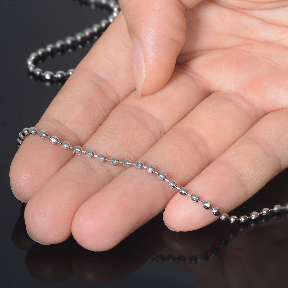 | ボールが連なったボールチェーンのボール1つ1つにカット(平らな面)を入れたネックレス。サッカーボールのようにカットされており、カット面がキラキラ輝き綺麗です。こちらのチェーンの留め具はボールを筒状の留め具にはめるコネクタータイプなので、丈夫で壊れにくい、ペンダントに通し易い、留め具がデザインの邪魔にならない、ニッパーなどで切って長さの調整が出来る等、優れた特徴を持つ大変使い勝手の良いネックレスです。 ※こちらのチェーンは絡まりにくく万が一絡まってしまったとしても解きやすいデザインです。 |