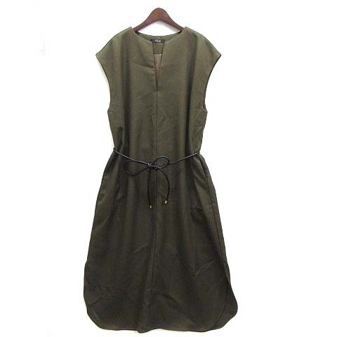 未使用品 ロッソ ROSSO アーバンリサーチ 2023AW キーネック ベルト付き ベストワンピース ロング カーキブラウン F レディース