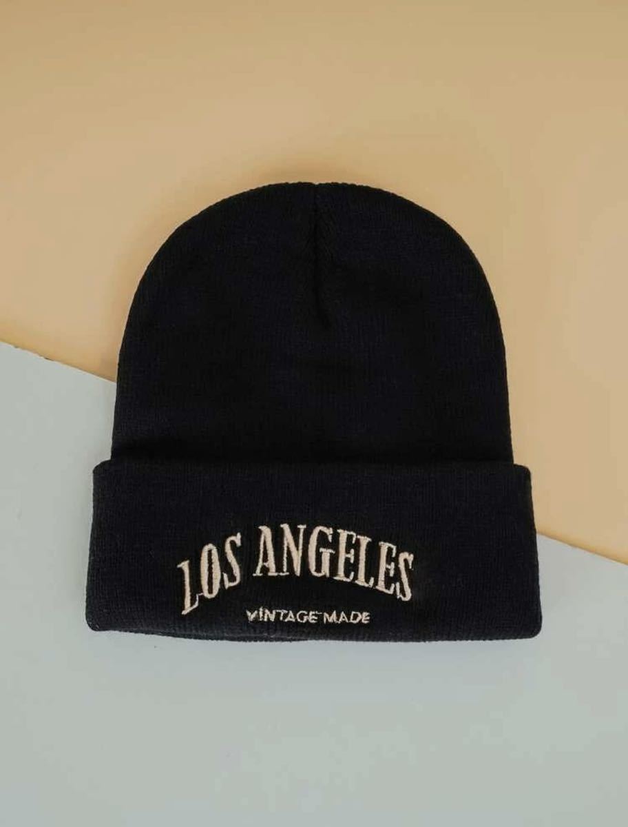 新品未使用 ニット帽 ニットキャップ ビーニー Beanie ロゴ ロサンゼルス Los Angeles アメリカ 黒色 ブラック ストリート シーイン SHEIN