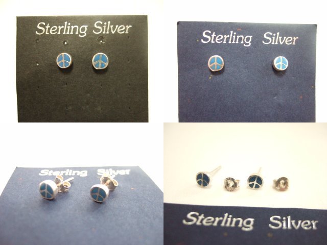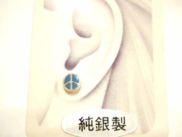 | 商品名 | 横浜最新 シルバー925SILVERピアスpeace ☮ 魅惑のピース 青 左右セット |