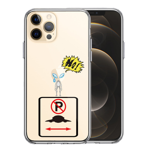 iPhone12Pro ケース クリア 未確認飛行物体 駐車禁止 スマホケース 側面ソフト 背面ハード ハイブリッド