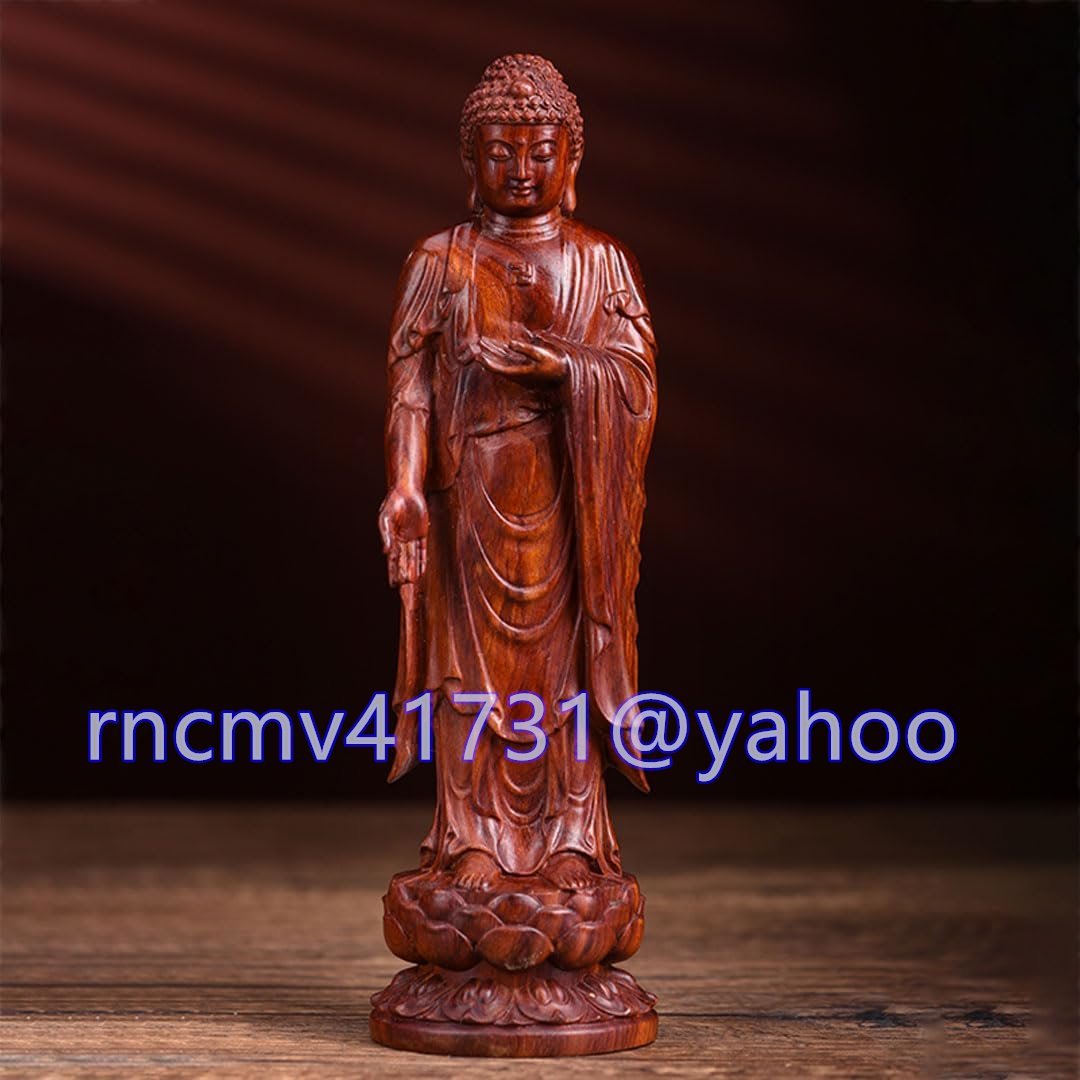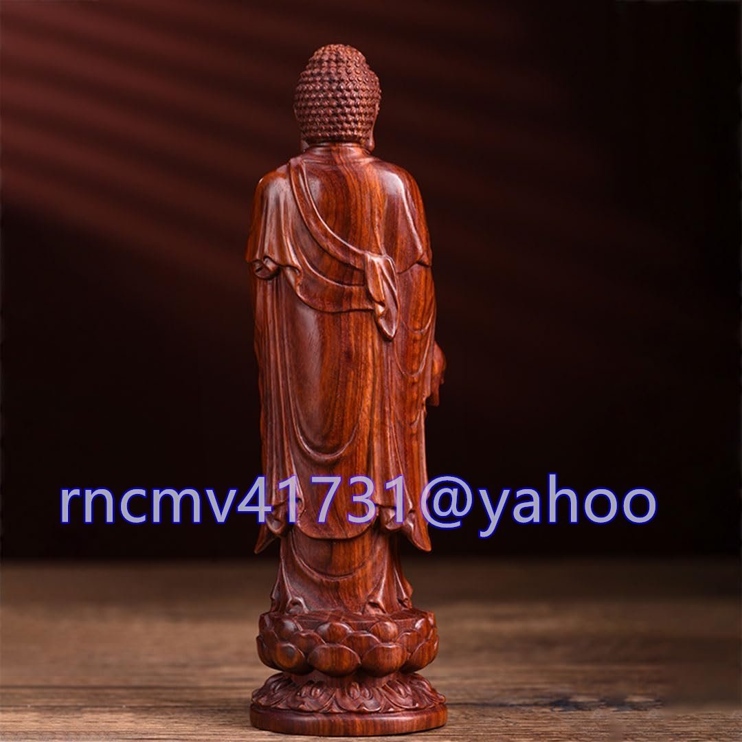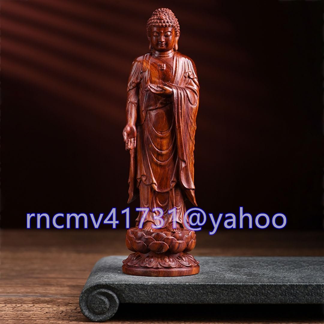 木彫りの仏像【阿弥陀如来立像】20cm 阿弥陀如来像 木製仏像 (戌・亥年生まれ)十二支守り本尊 干支(あみだにょらいり) (紫檀)