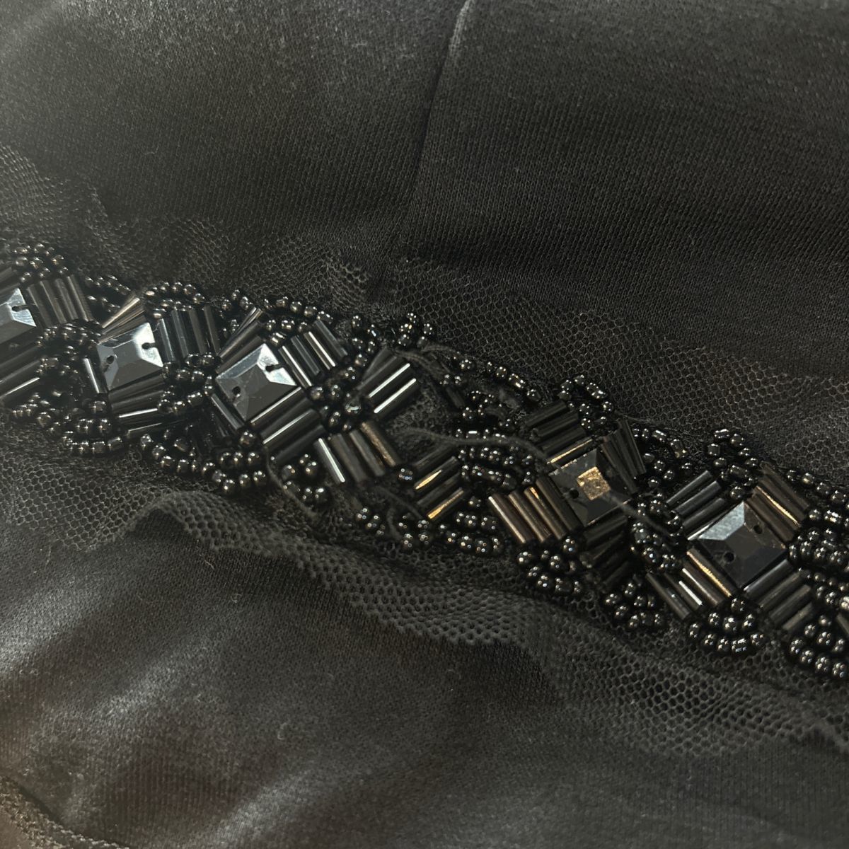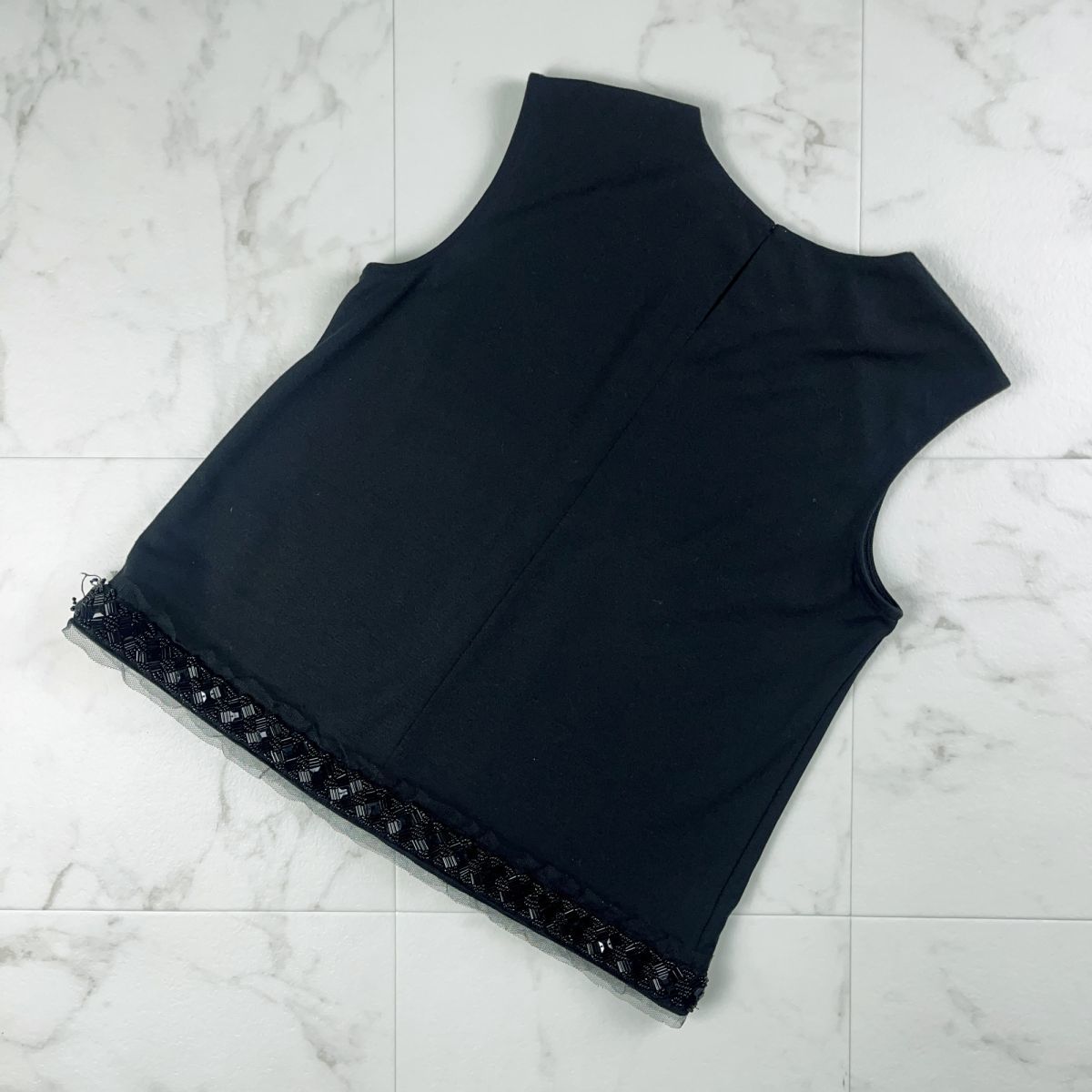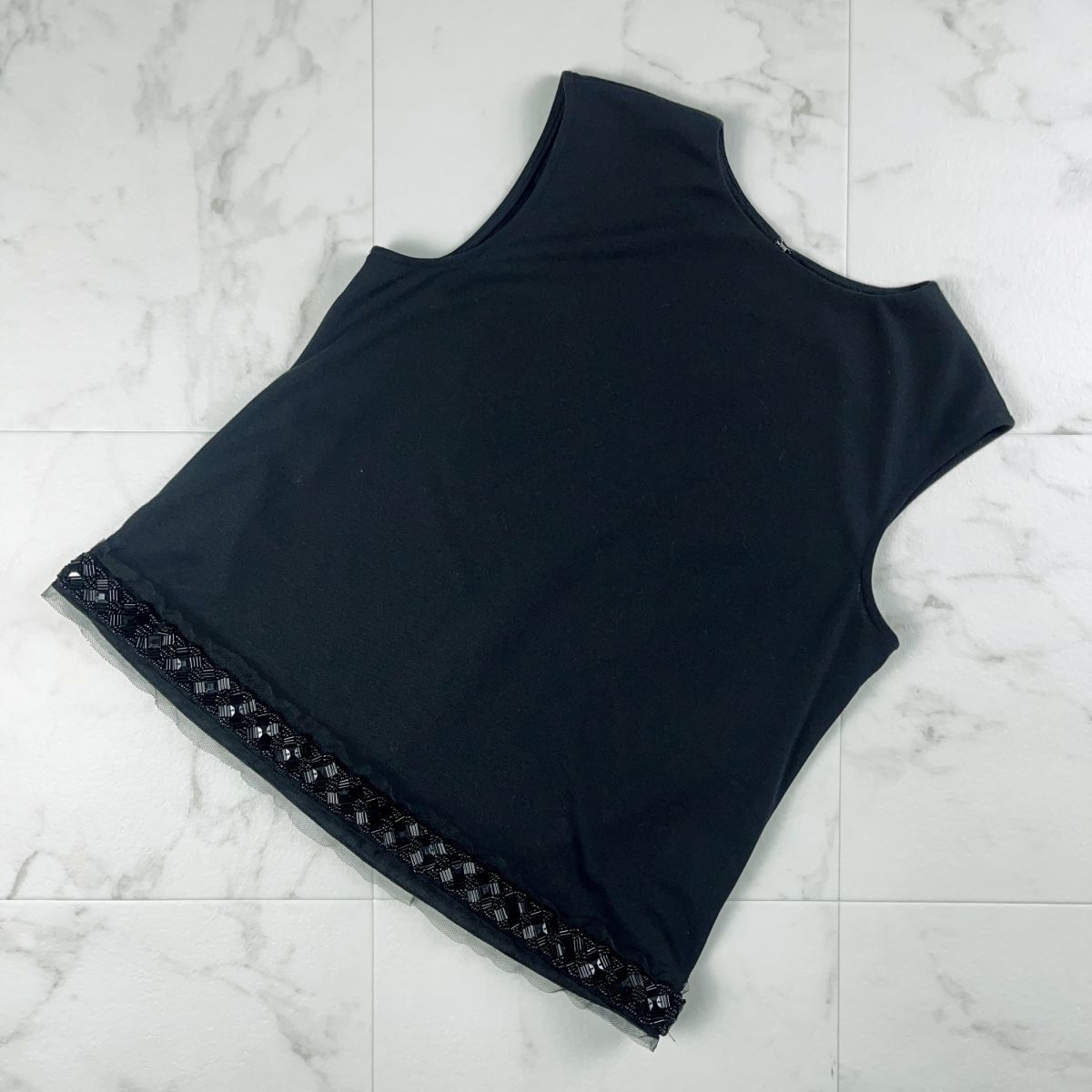 UNSPECK アンスペック 裾ビーズ刺繍 フレア ノースリーブブラウスカットソー トップス レディース 黒 ブラック サイズ38*LC358