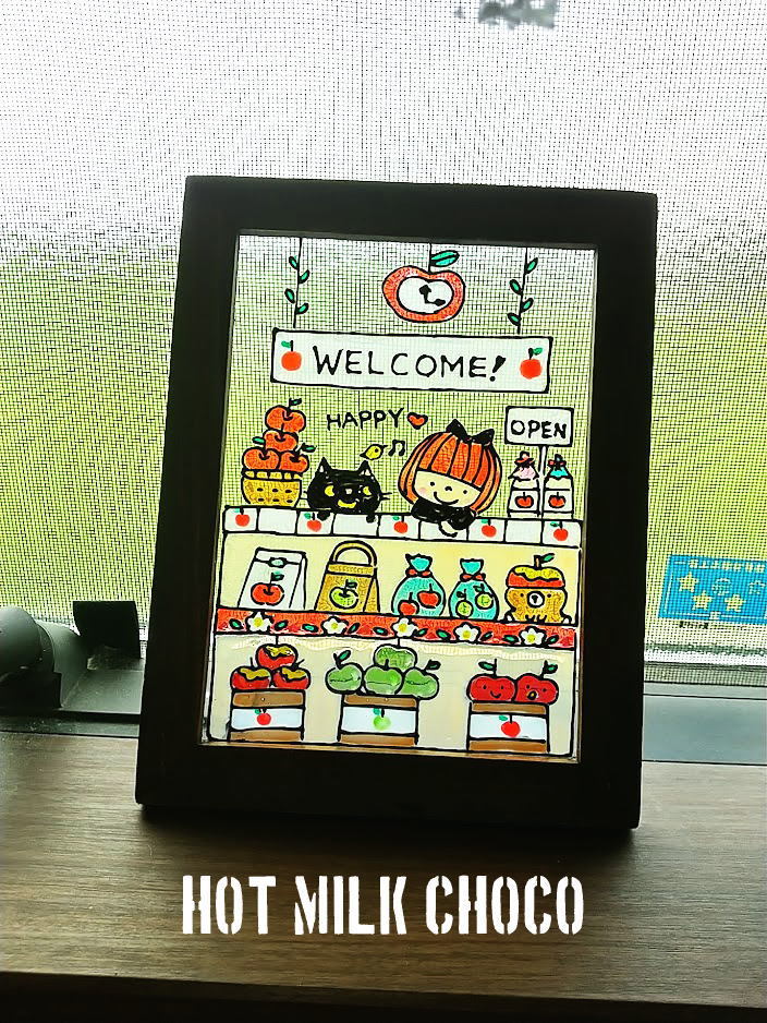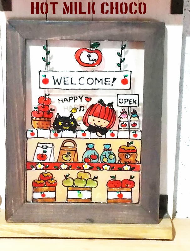 ★NO.L161★ステンドグラス風・2Lサイズ・りんご・アップル・ジャム・林檎飴・アップルパイ・ハンドメイド・インテリア・雑貨・果物・林檎