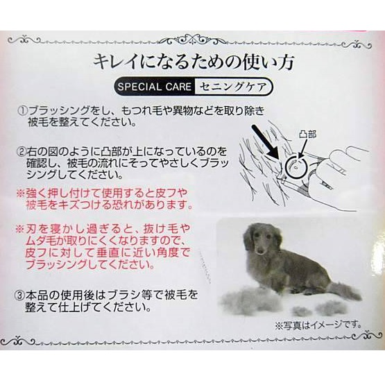 | 激安即決★プレシャンテ セニングブラシ ミニ 犬・猫用★新品 特殊構造の刃で被毛を漉き取りボリュームダウン。 アンダーコートの毛を特殊構造の刃でたっぷりとスキとります。 抜け毛、もつれ毛を減らしキレイな被毛に。 スベりにくいラバーグリップ仕様。 手に持ちやすいミニタイプ。 ※シングルコートの犬・猫種(ヨークシャーテリア、プードル、マルチーズ、シーズー、シャムなど)や毛が薄い犬種には使用しないでください ■サイズ(約):幅65×高さ94×奥行14mm 【材質】 本体:ABS樹脂、エラストマー樹脂 キャップ:PS樹脂 刃:ステンレス ■適応種:アンダーコートのある全犬種・全猫種 ※衛生上、返品・交換は承れませんのでご確認の上での入札をお願いいたします。 落札価格は1点の価格になります。 |