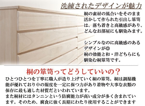 ◇衣類収納に最適な桐箪笥にデザイン性をプラス。和室・洋室のどちらにも合う、風格と気品を兼ね備えた逸品。