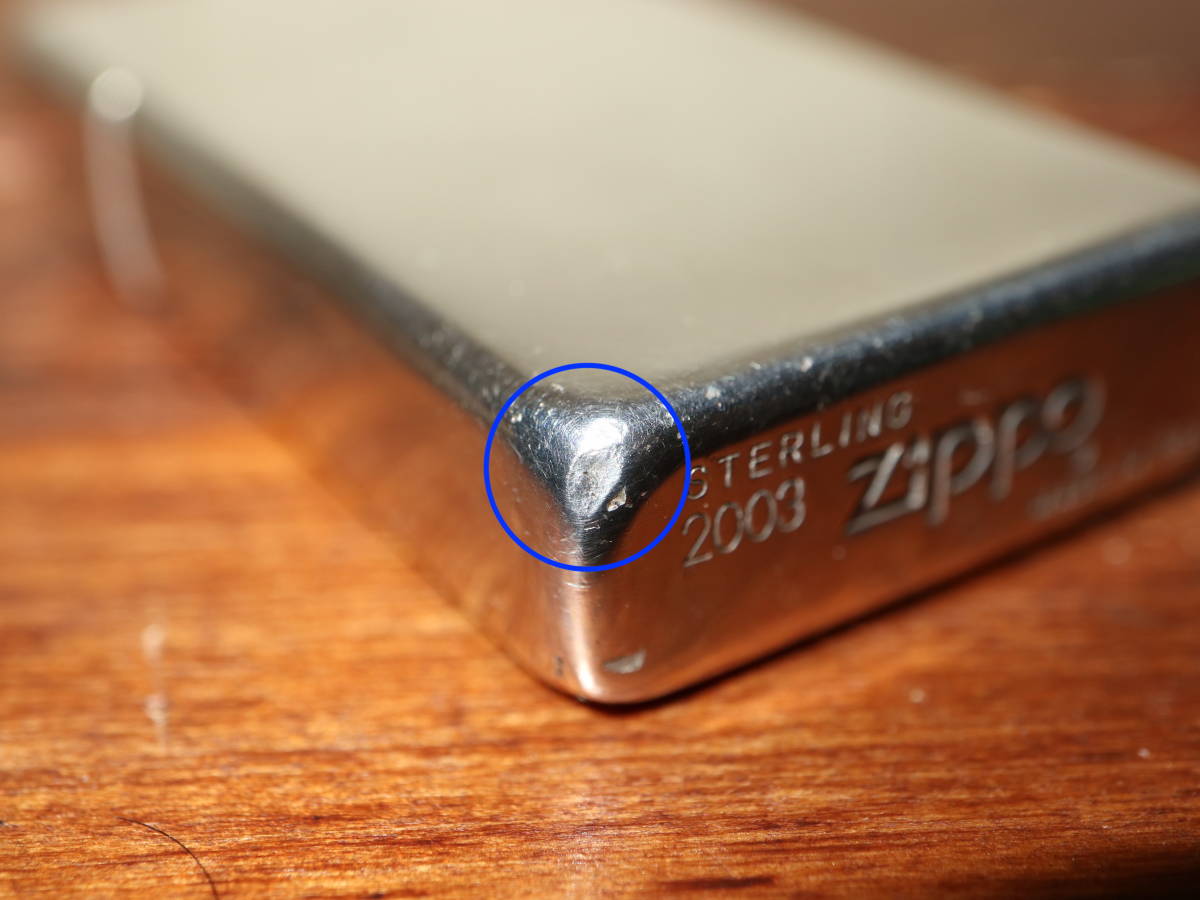 ヒンジに若干のガタ付きがあります。(レギュラージッポーに比べればガタついているものの、スターリングの中では良好な範囲かと思います。)