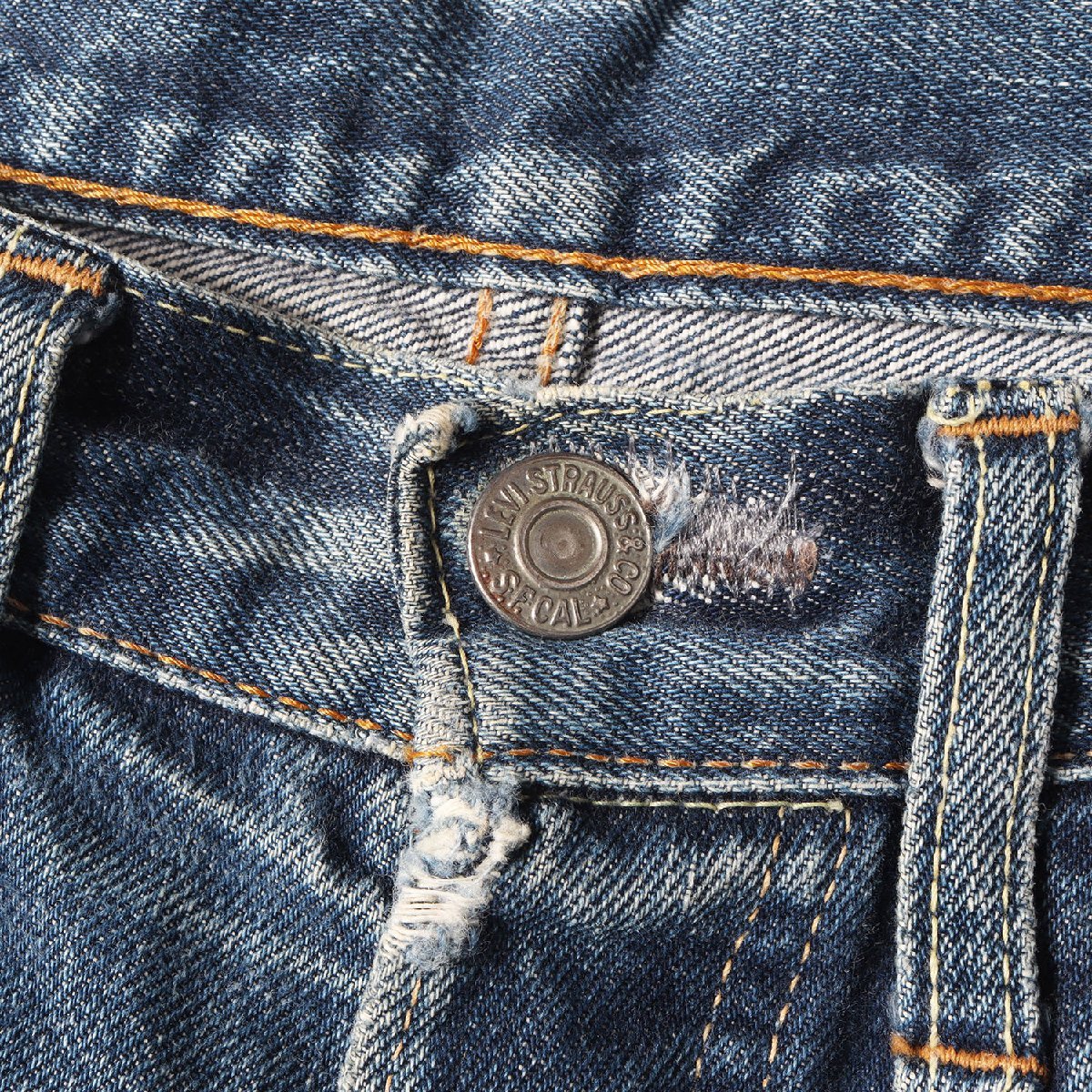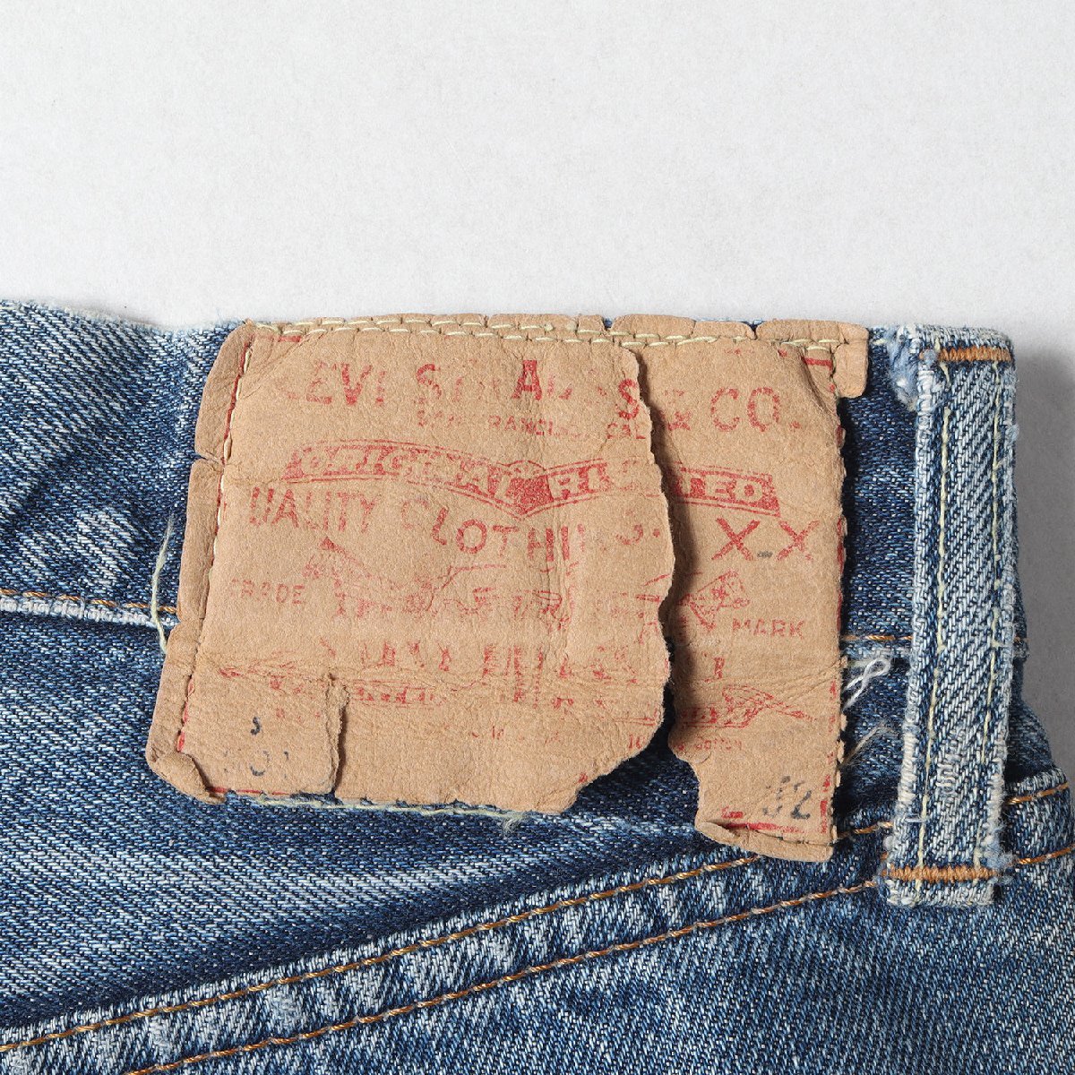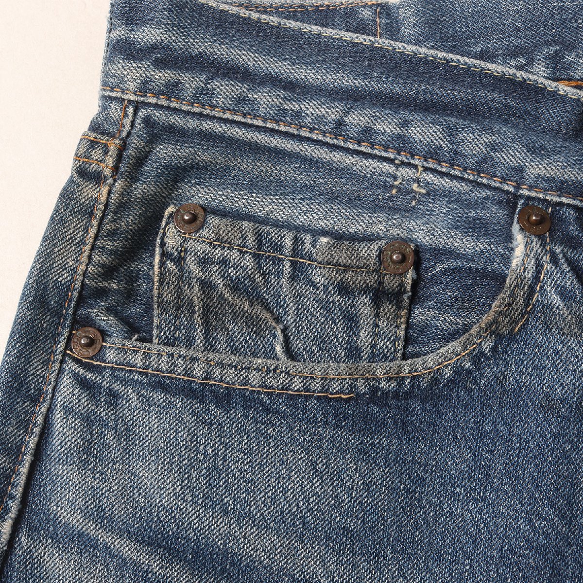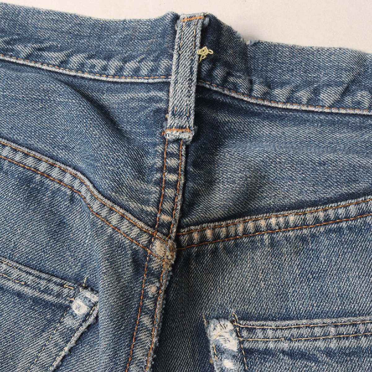 【ブランド名】Levi's / vintage(ヴィンテージ リーバイス) 【リリース時期】1960年代 【素材】コットン100% 【商品説明】 ・人気の高いSタイプ ・“501 BigE”モデル ・紙パッチ(破れあり) ・両面BigE赤タブ(読み取り不可) ・ボタン裏刻印“6” ・フライボタン足長R ・フロント Vステッチ ・ウエスト上 シングルステッチ ・ポケットスレーキにスタンプ無し ・バックポケット裏 シングルステッチ ・コインポケット裏 シングルステッチ ・裾チェーンステッチ 【カラー】40% 【サイズ】詳細参照(W32位) ウエスト約78cm(平置き)×股上約28cm×股下約70cm×ワタリ幅約31cm(もも幅)×裾幅約18cm 【状態】詳細を参照 ・股、両腿、裾、ボタンホールにリペアあり・所々に汚れ、擦れ、1cm前後の擦れ破れあり・紙パッチに破れ、赤タブにほつれあり・チェーンステッチによる裾上げあり 【付属品】なし ![]() ※色がある場合、モニターの発色の具合によって実際のものと色が異なる場合があります。 お問い合わせに関しましてはメールのみでのご対応とさせていただいておりますのでご了承下さいませ。 |