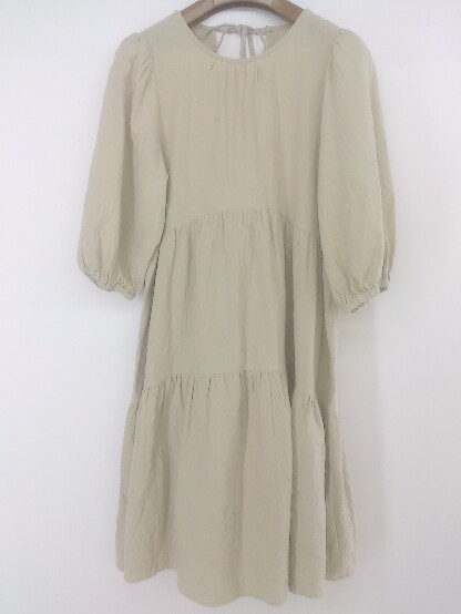 ◇ Gleeful グリーフル 五分袖 ミニ ワンピース サイズL ベージュ レディース P