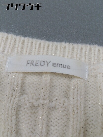 ◇ fredy emue フレディ エミュ ラメ 長袖 膝丈 ケーブル ニット ワンピース サイズ38 ライトベージュ レディース