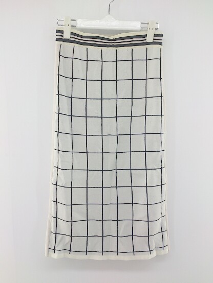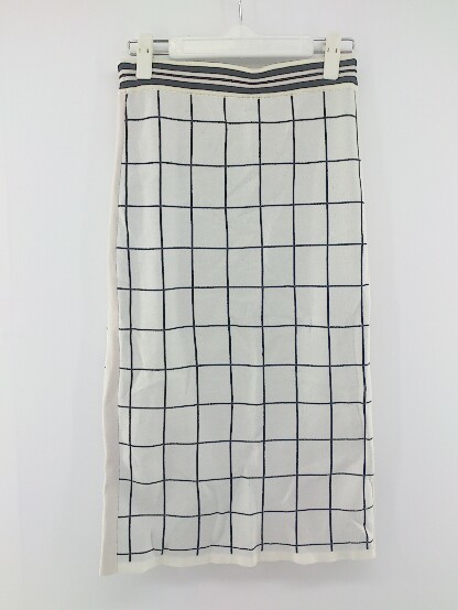 ◇ FURFUR ファーファー チェック ニット 膝下丈 タイト スカート サイズF ホワイト系 ブラック マルチ レディース P
