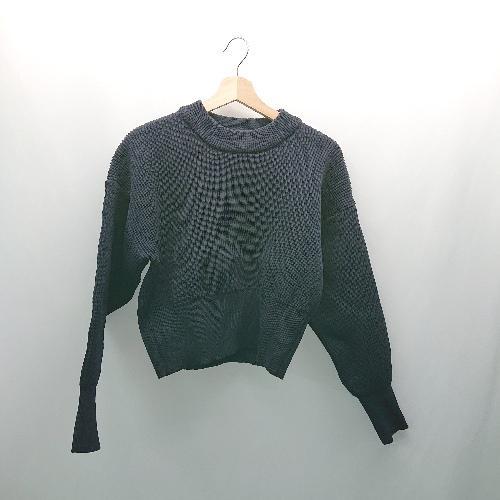 ◇ ti. カジュアル リブ シンプル 秋冬 丈短め 長袖 トレーナー サイズS ネイビー レディース E