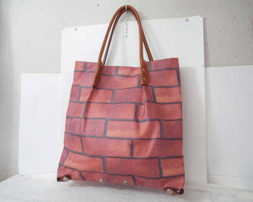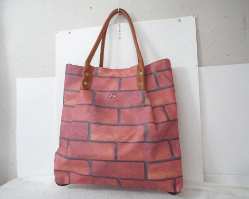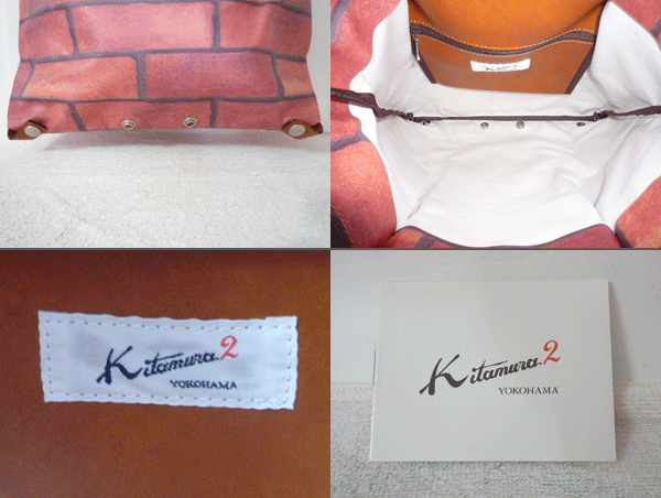| 良品 キタムラ Kitamura K2 PVC 合皮 オレンジ ブラック レンガ柄 ブラウン トート ハンド バッグ レディース | ||