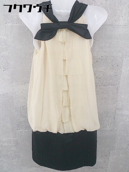 ◇ Ray BEAMS レイ ビームス リボン シフォン ノースリーブ ミニ ワンピース ベージュ ブラック レディース