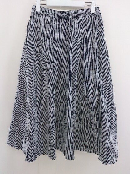 ◇ BEAMS HEART チェック ウエストゴム タック ロング フレア スカート ブラック ホワイト レディース
