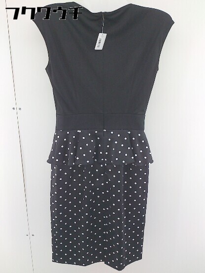 ◇ PINKY&DIANNE ペプラム 水玉 カシュクール ノースリーブ 膝下丈 ワンピース サイズ 34 ブラック ホワイト レディース