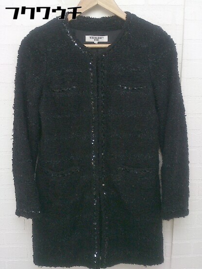 ◇ NATURAL BEAUTY BASIC スパンコール ラメ糸 長袖 ノーカラー コート サイズS ブラック レディース