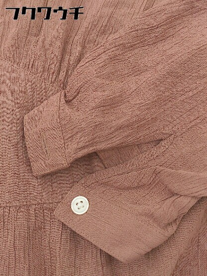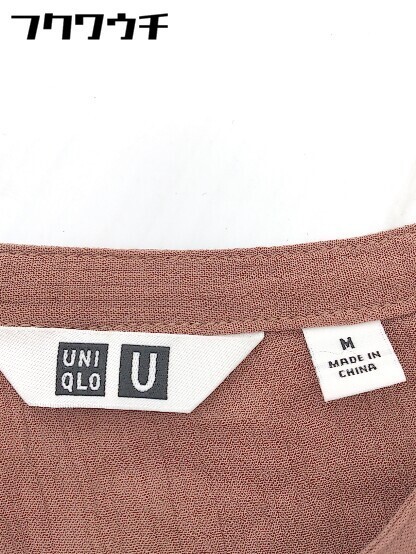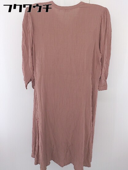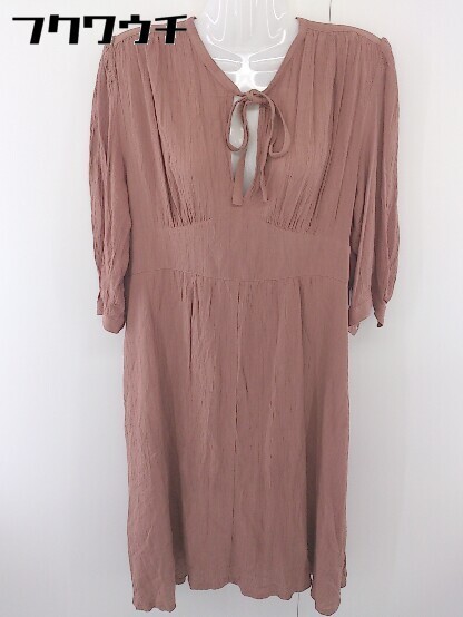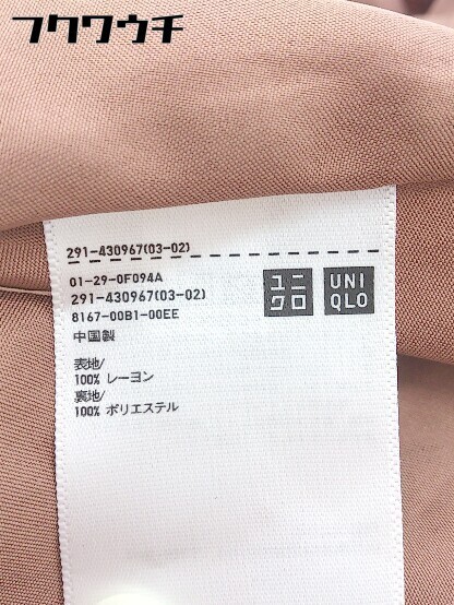 ◇ ◎ UNIQLO ユニクロ 襟リボン スタンドカラー 長袖 膝下丈 ワンピース サイズ M ピンクベージュ レディース