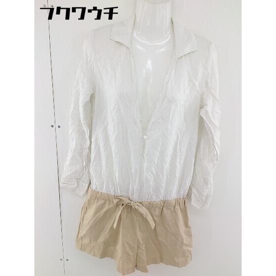 ◇ URBAN RESEARCH アーバンリサーチ 切替 ストライプ 長袖 シャツ サロペット サイズ ONE ホワイト ベージュ レディース
