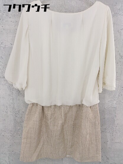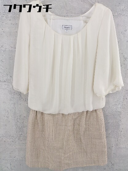 ◇ anatelier アナトリエ 切替 七分袖 ミニ ワンピース サイズ38 アイボリー ベージュ レディース