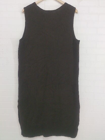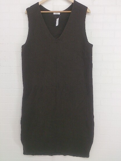 ◇ LOWRYS FARM ニット Vネック サイドスリット ノースリーブ 膝下丈 ワンピース サイズF ブラウン レディース