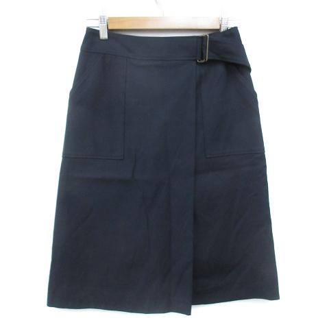 ストラ Stola. フレアスカート ミモレ丈 リングベルト 無地 38 紺 ネイビー /FF42 レディース