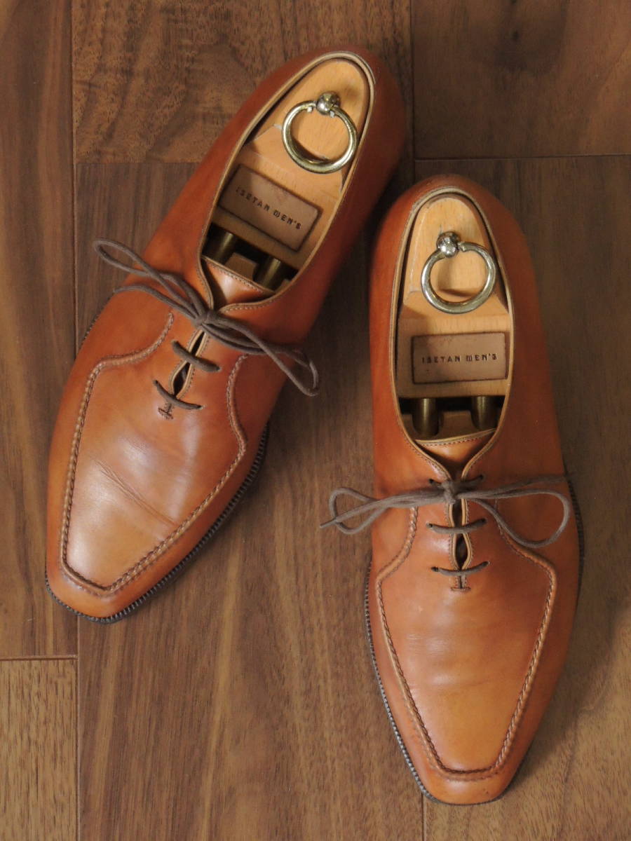十八番のパティーヌ技法は本当に素晴らしく、計算されたムラのあるブラウンカラーが例えようもなくこのシューズの個性を決定づけています。