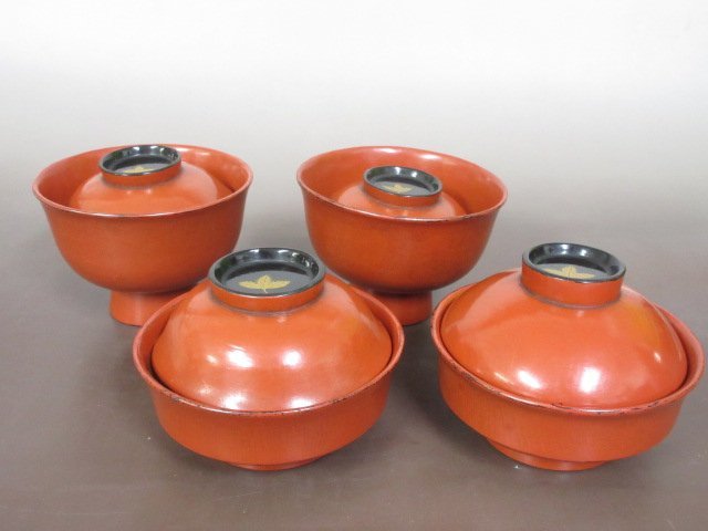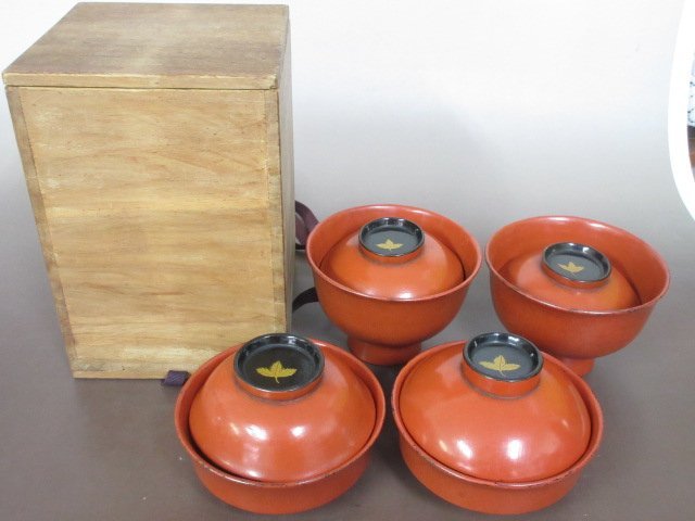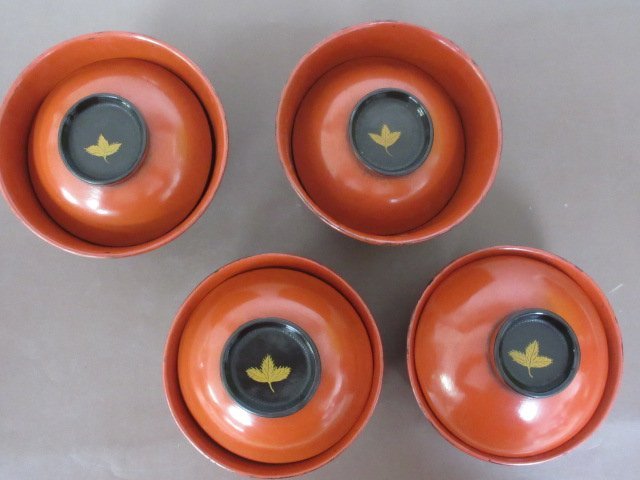 | ご覧頂きありがとうございます。 | 時代物 根来塗 紅葉文 飯椀2客 平椀2客 4客セット 漆器 お椀 吸物椀 箱付き コレクター放出品 送料無料! ot2-017 240203 |