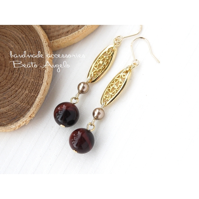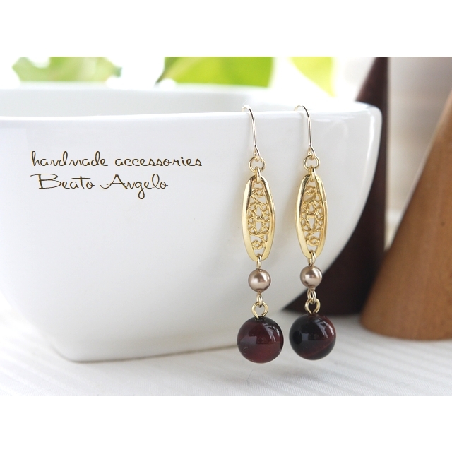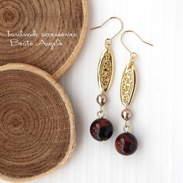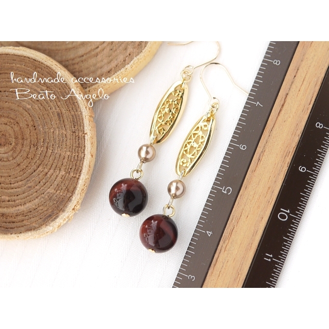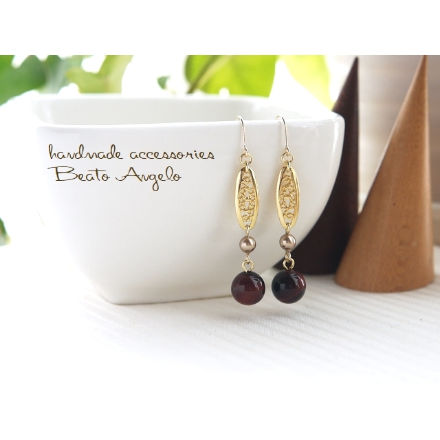天然石レッドタイガーアイとオーバル透かしのピアス(p-004)G