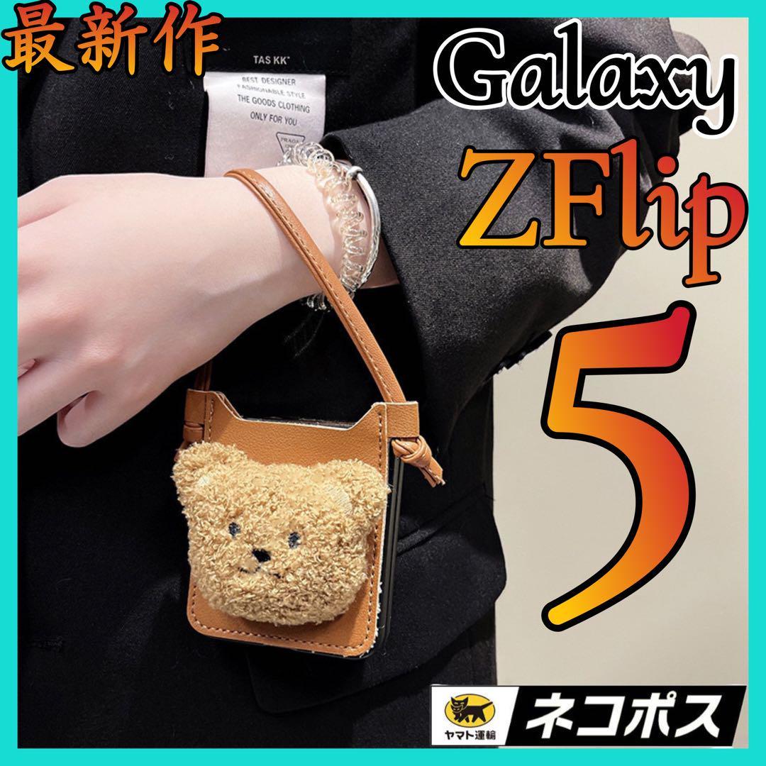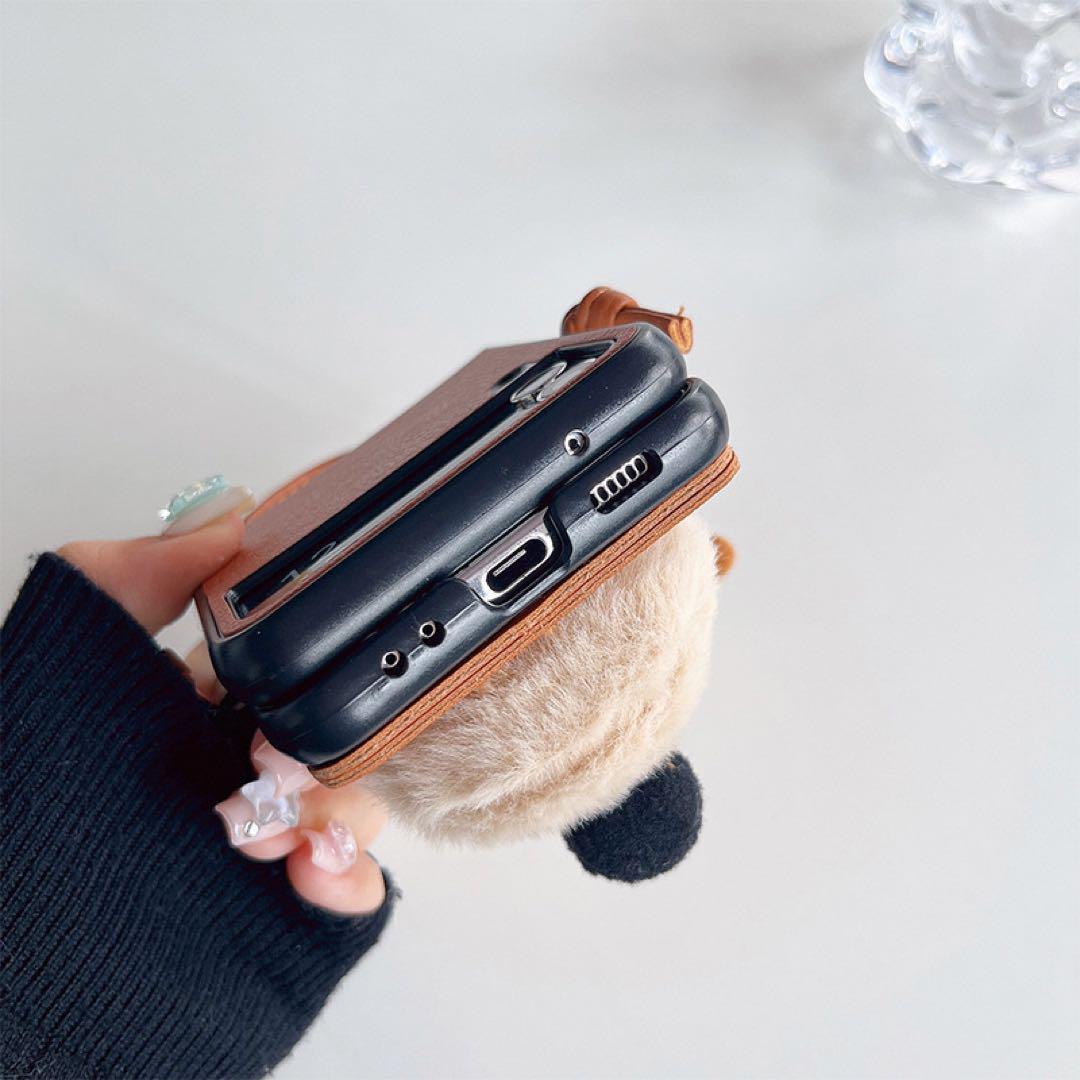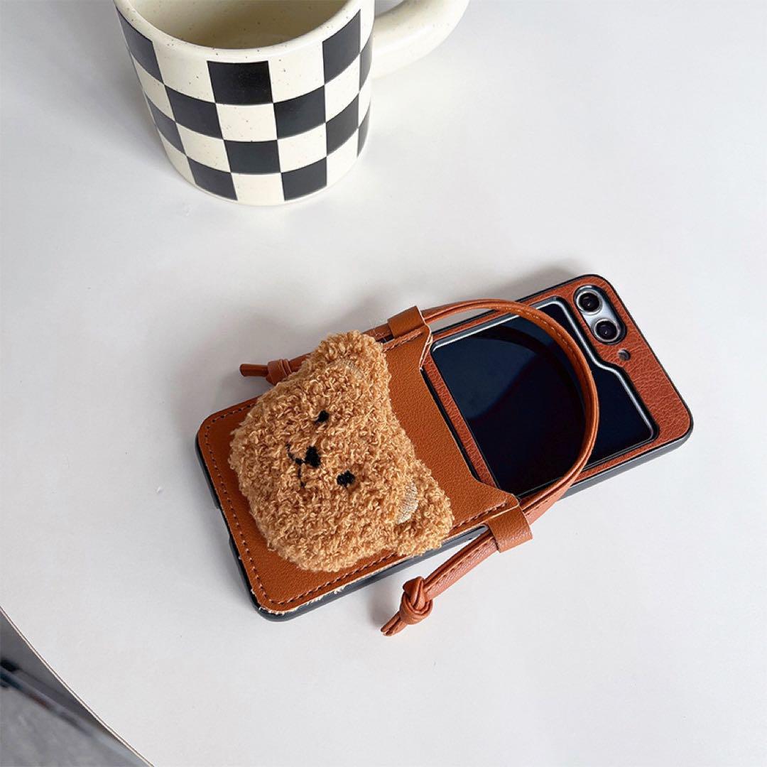 Galaxy ZFlip5 ケース 可愛いクマちゃん チェーン付き お洒落 ギャラクシーZフリップ5 ケース 折りたたみ型 おしゃれ 耐衝撃 落下防止