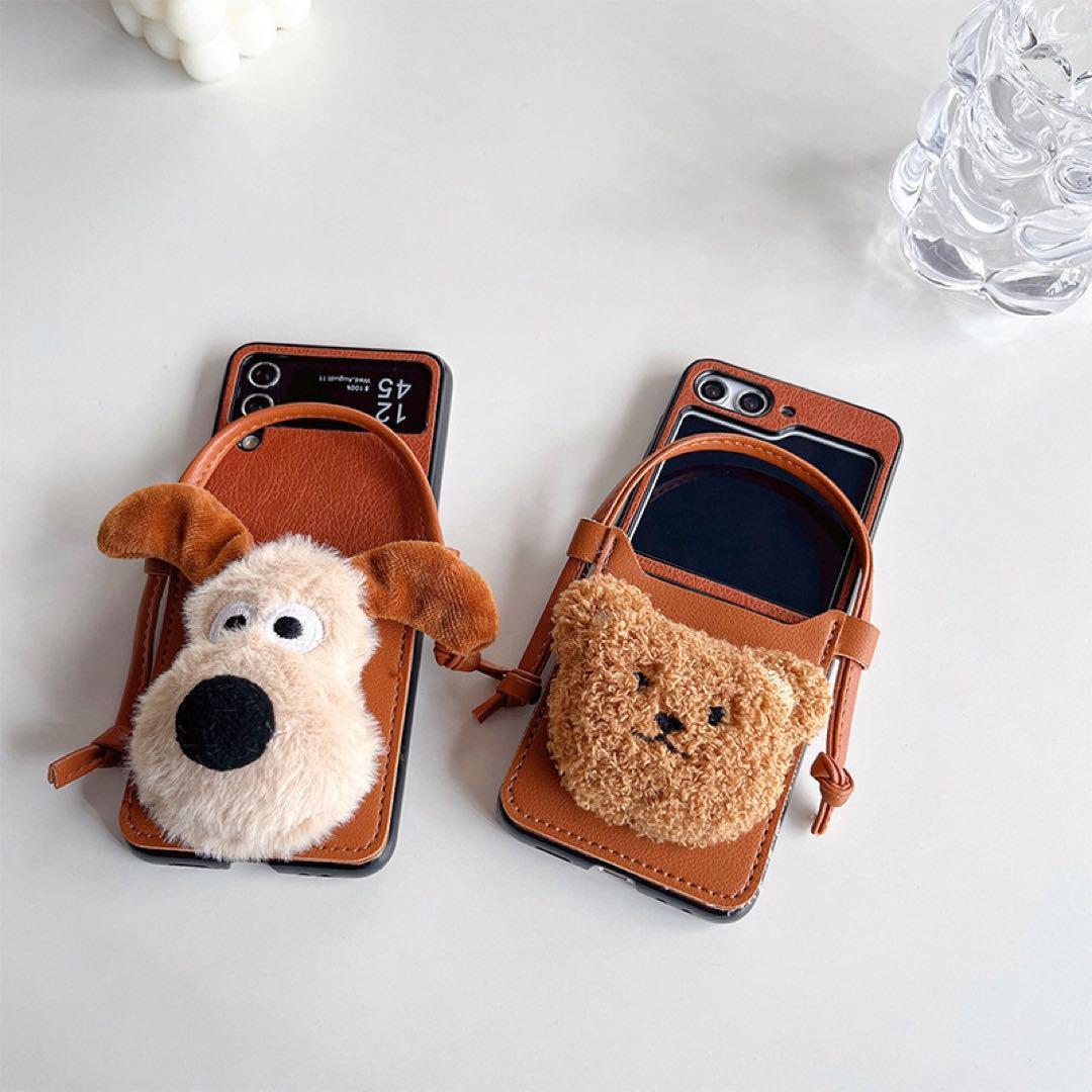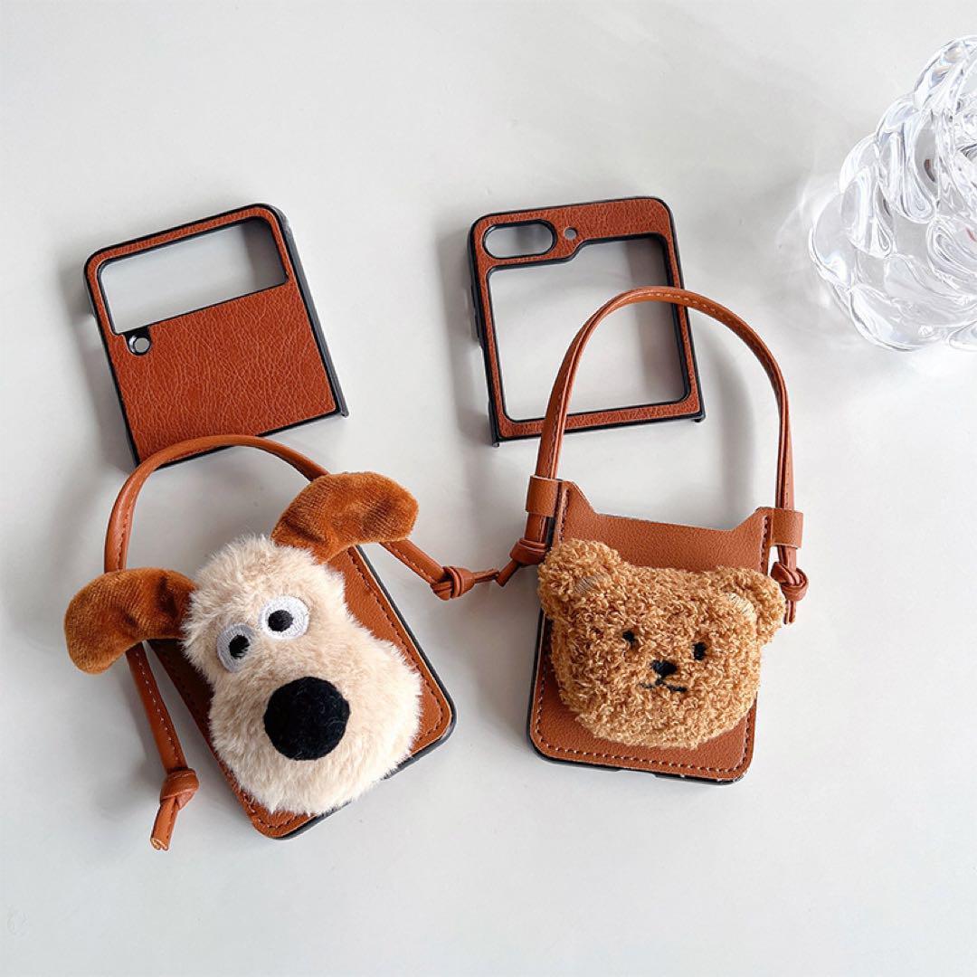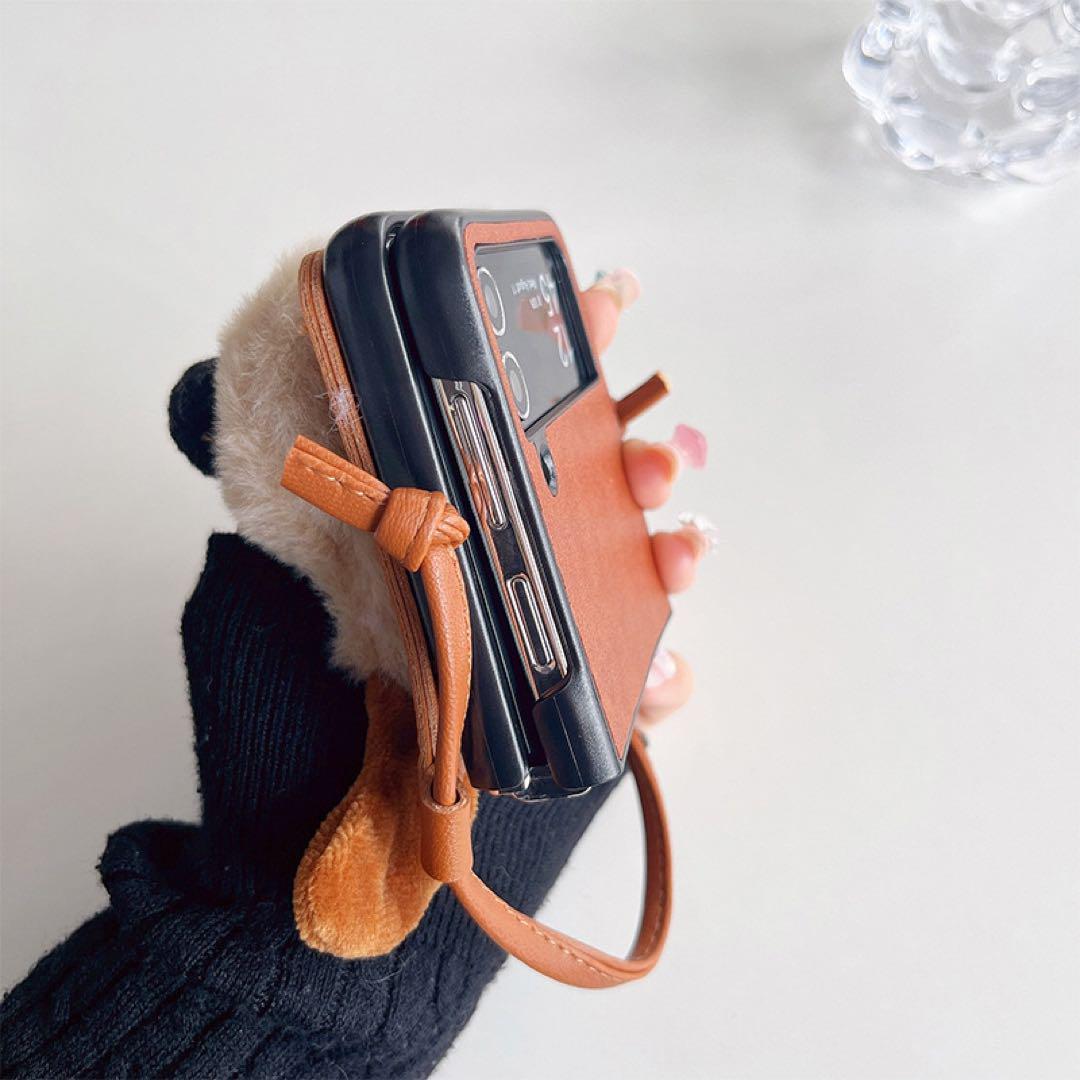 Galaxy ZFlip5 ケース 可愛いクマちゃん チェーン付き お洒落 ギャラクシーZフリップ5 ケース 折りたたみ型 おしゃれ 耐衝撃 落下防止