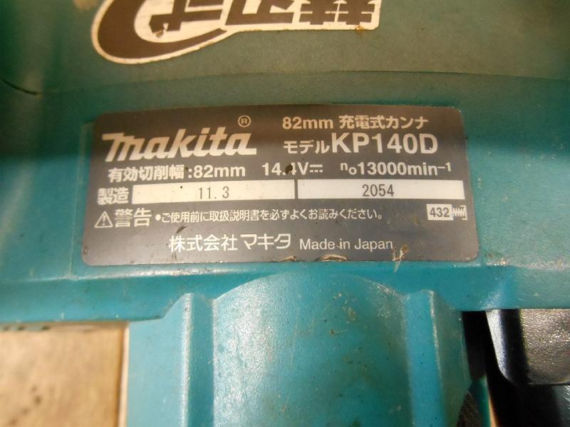◆ makita 充電式カンナ KP140D マキタ 本体のみ 有効切削幅82mm 14.4V 鉋 かんな 研削 研磨 切断機 大工道具 電動工具 コードレス No.3287