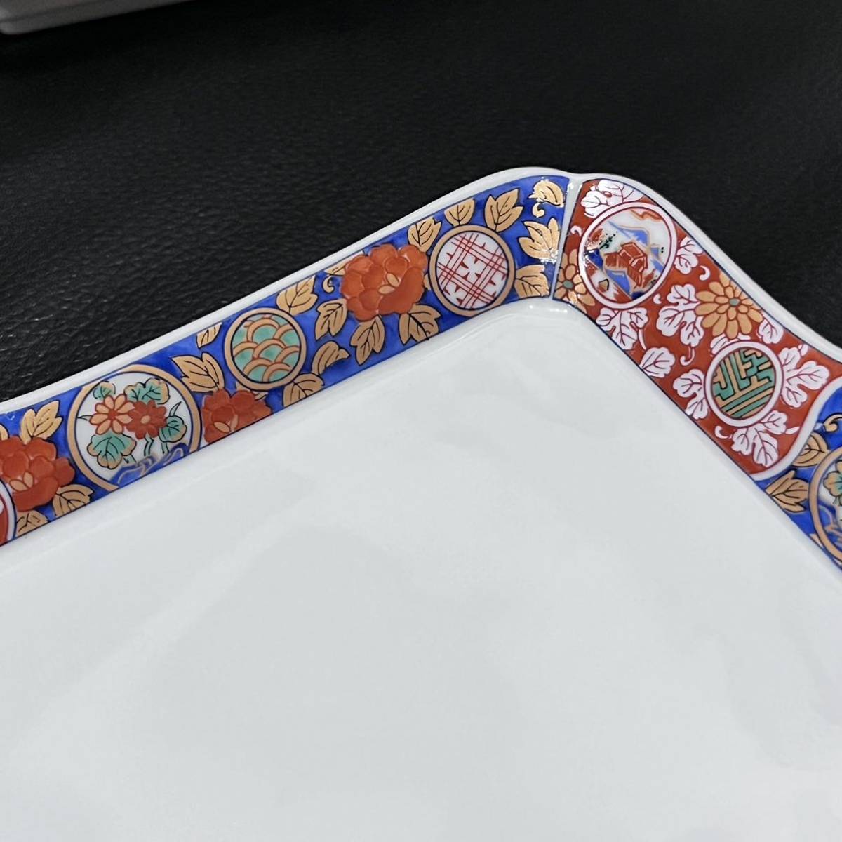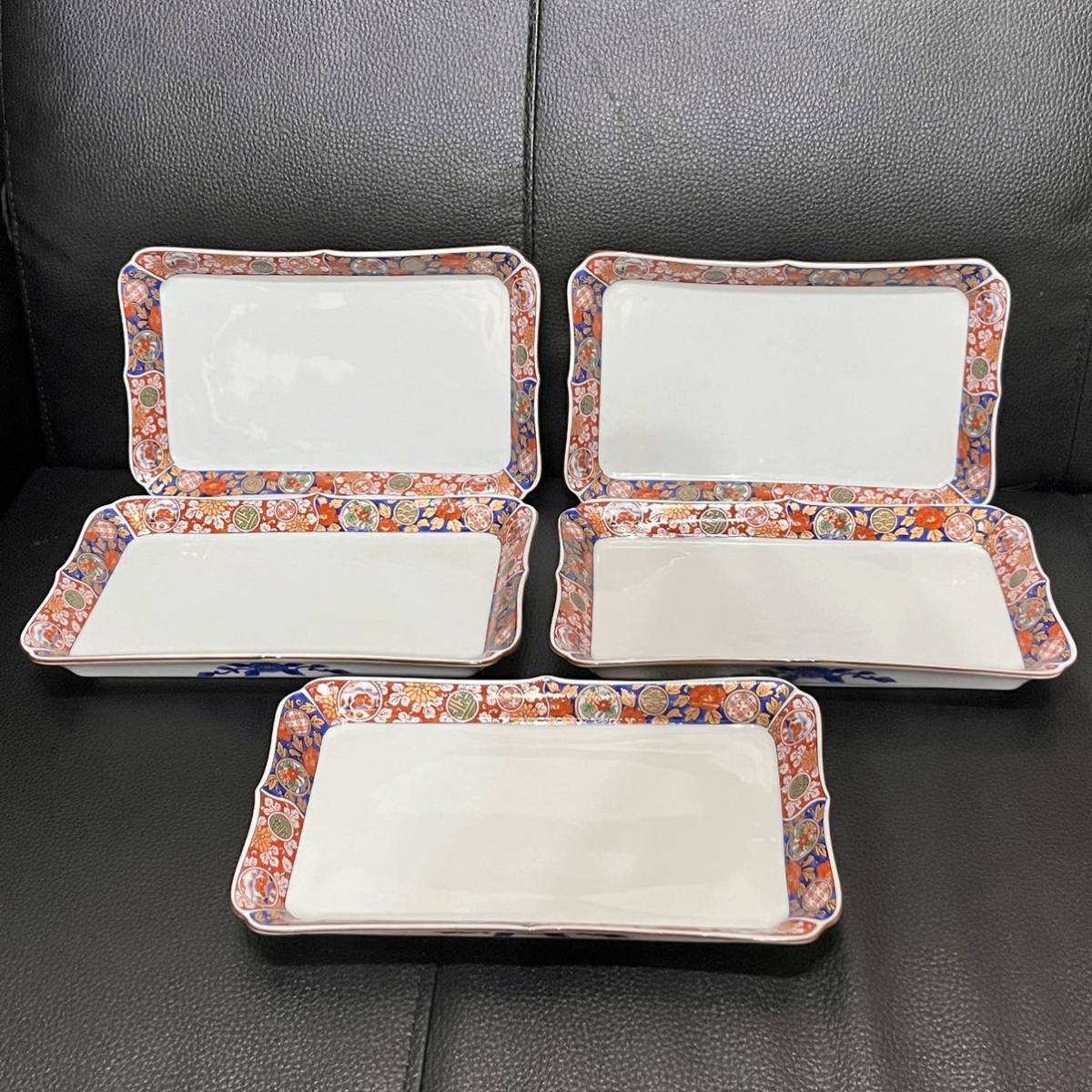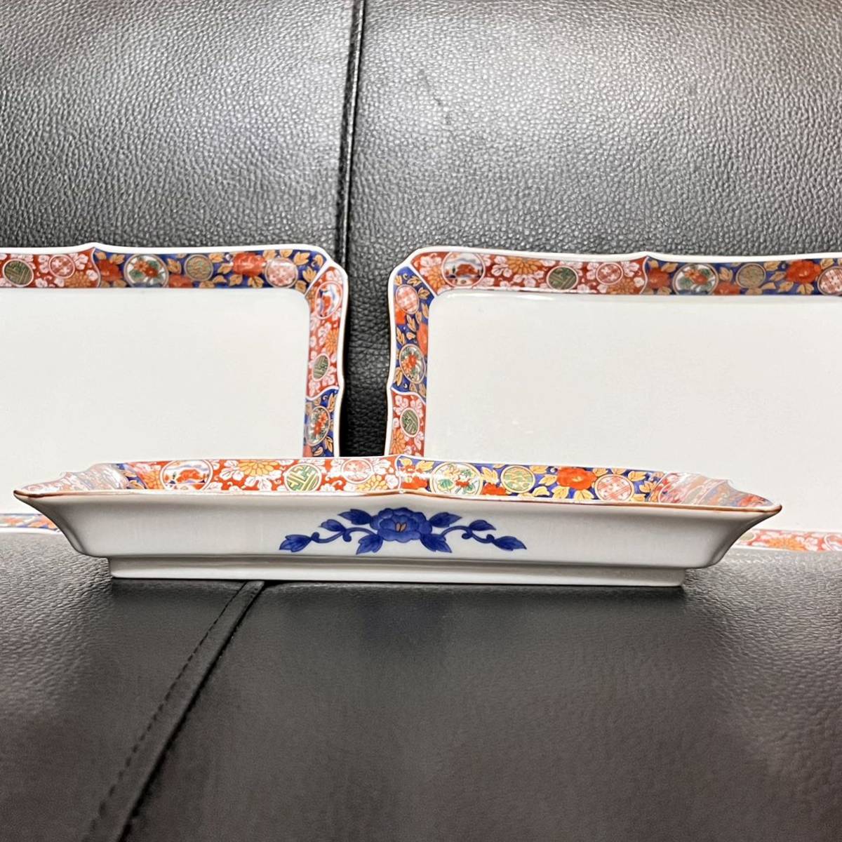 古伊万里 龍峯窯 錦彩 焼物皿 長角皿 5枚セットです。