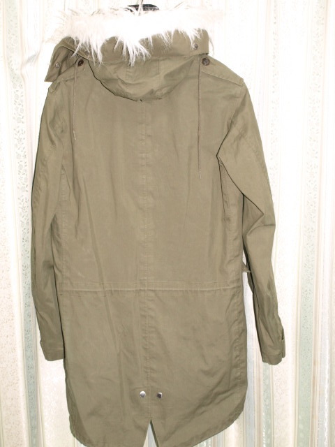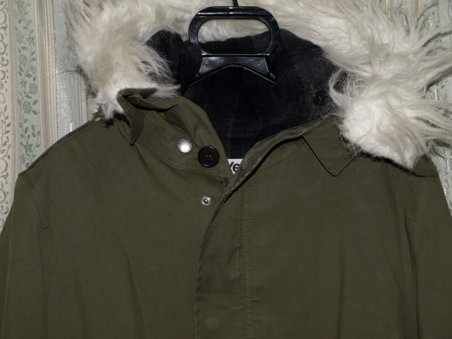 ◆カラーはモスグリーン、素材はコットン100%、ライナー(ウール90%・ナイロン10%)とフードのファーは取り外し可能です。