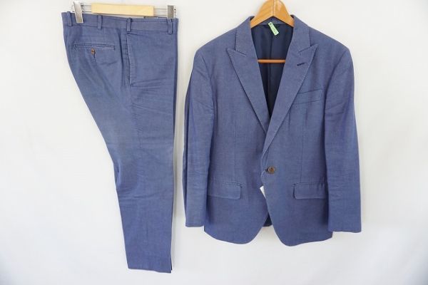 色落ち等ございますが大きなダメージなどなくまだまだお使い頂けると思います。 1ボタン、サイドベンツ、総裏地、ノータックパンツ ※内ポケット付近にネーム刺繍がございます。 表記サイズ:048A│パンツ082 色:青紺系 素材:素材タグ画像ご参照ください。 実寸サイズ:ジャケット/着丈 約66cm 身幅 約53cm 肩幅 約44cm 袖丈 約59cm パンツ/ウェスト 約42cm 股上 約22.5cm 股下 約70cm ヒップ 約49cm ワタリ 約30.5cm 裾幅 約17.5cm ※サイズ寸法は平置き、素人の採寸となります。 多少の誤差があることをあらかじめご了承ください。 ※ブランドやデザインによって表記サイズと実寸サイズが異なる場合があります。必ず実寸サイズをご参考のうえご入札ください。 ※商品の色味は個人的なものです。実物に近い色味を掲載するように努めてはおりますが、公式を調べている訳ではありませんのであらかじめご了承ください。 |