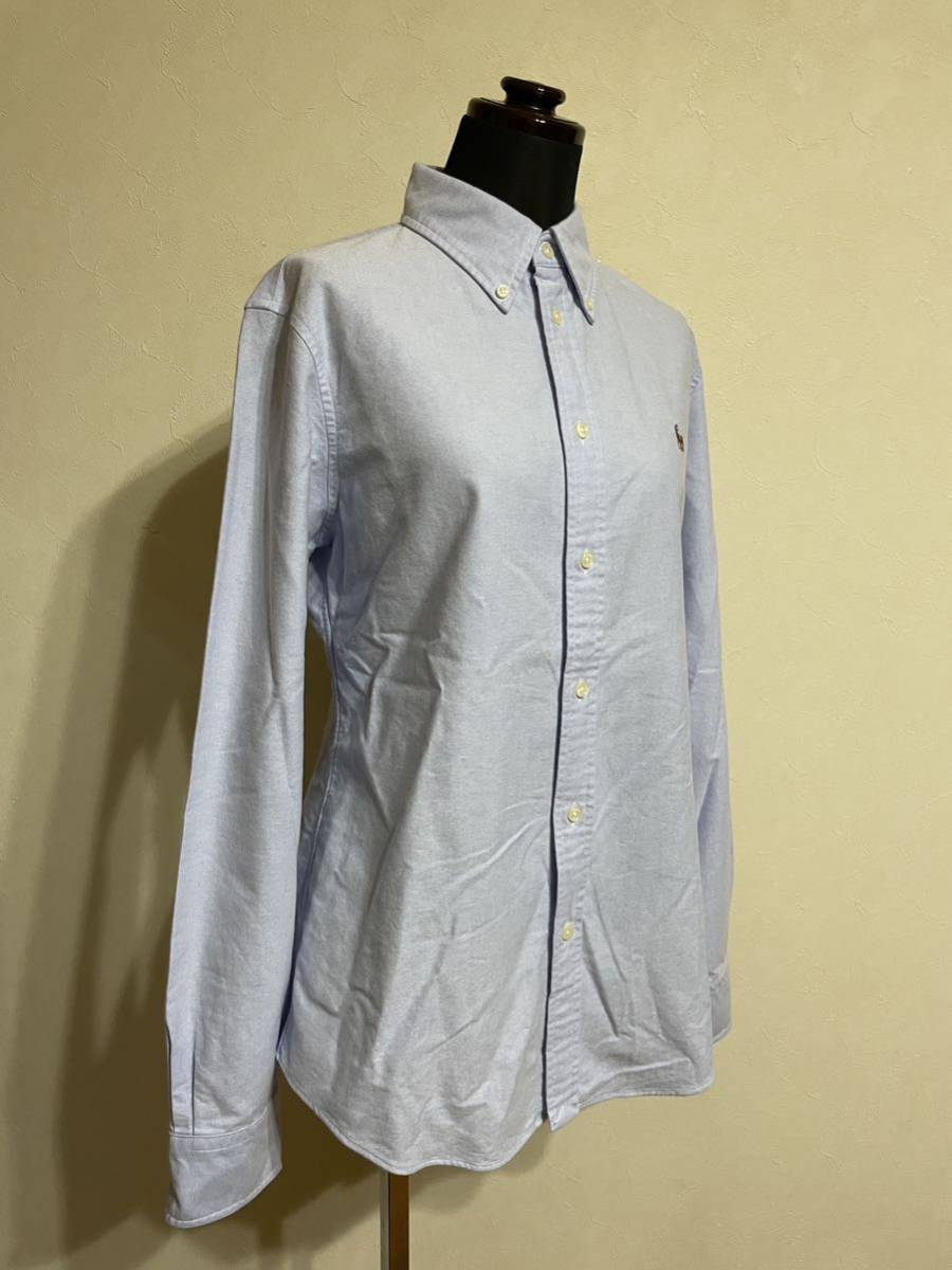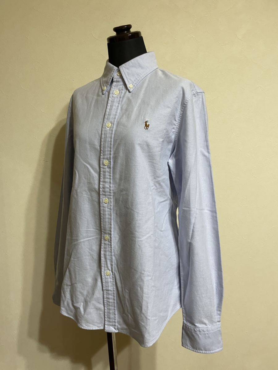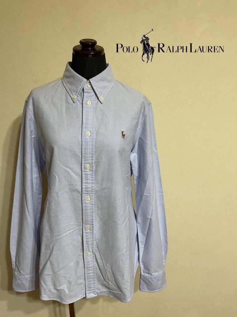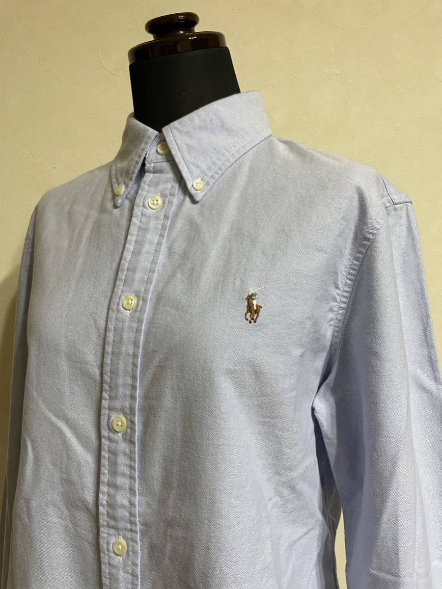 【美品】 Polo Ralph Lauren ポロ ラルフローレン レディース ボタンダウン オックスフォードシャツ スリムフィット サイズM 長袖 ブルー