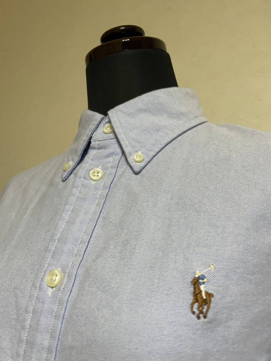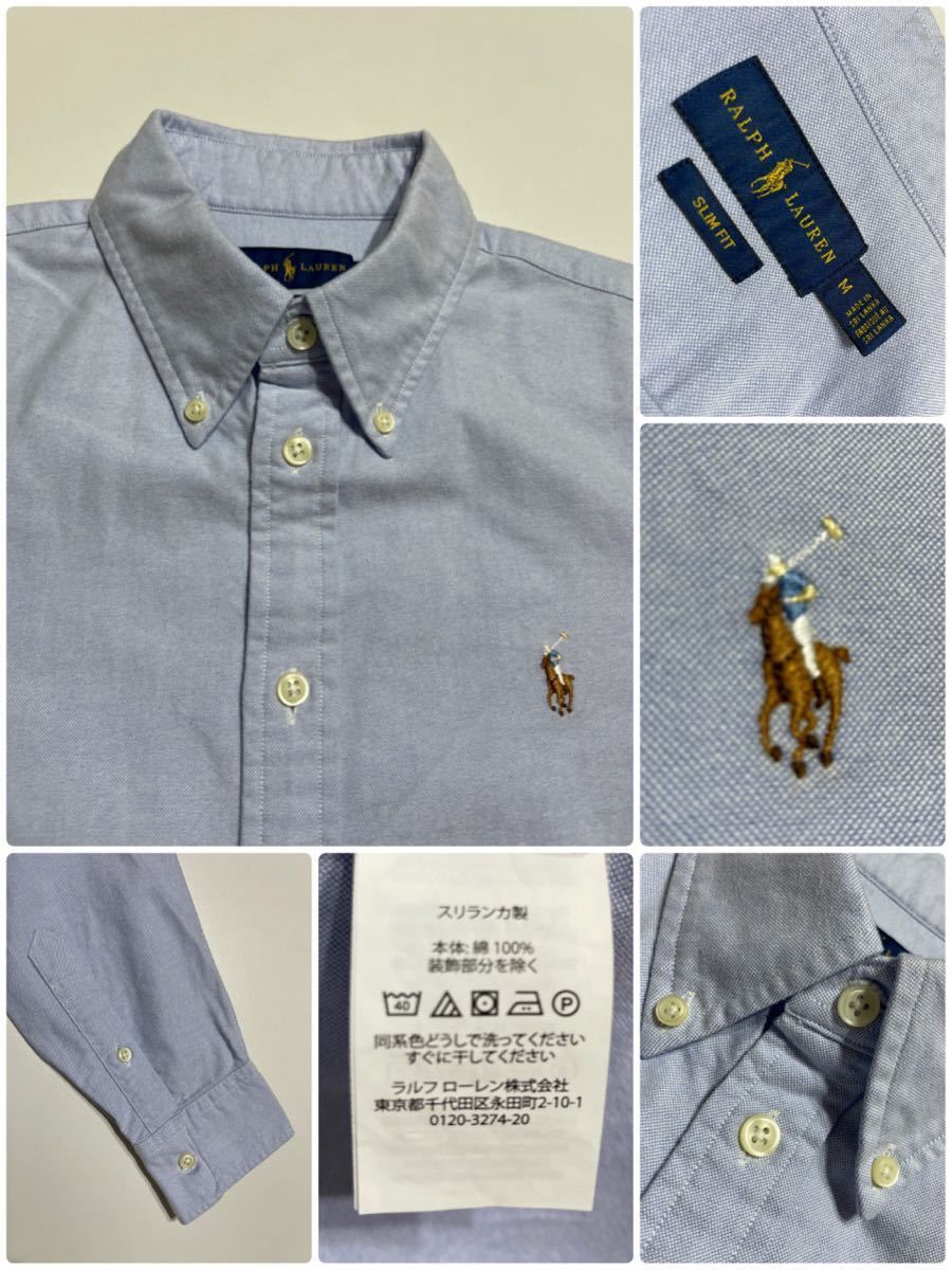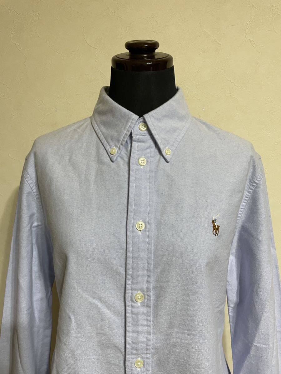 【美品】 Polo Ralph Lauren ポロ ラルフローレン レディース ボタンダウン オックスフォードシャツ スリムフィット サイズM 長袖 ブルー