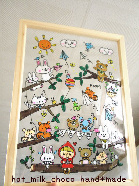 絵を描いたステンドグラス風のアートです。