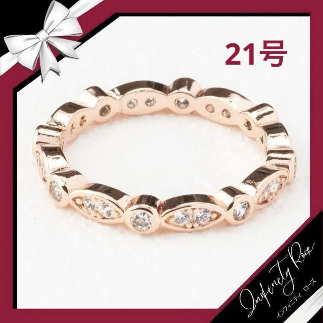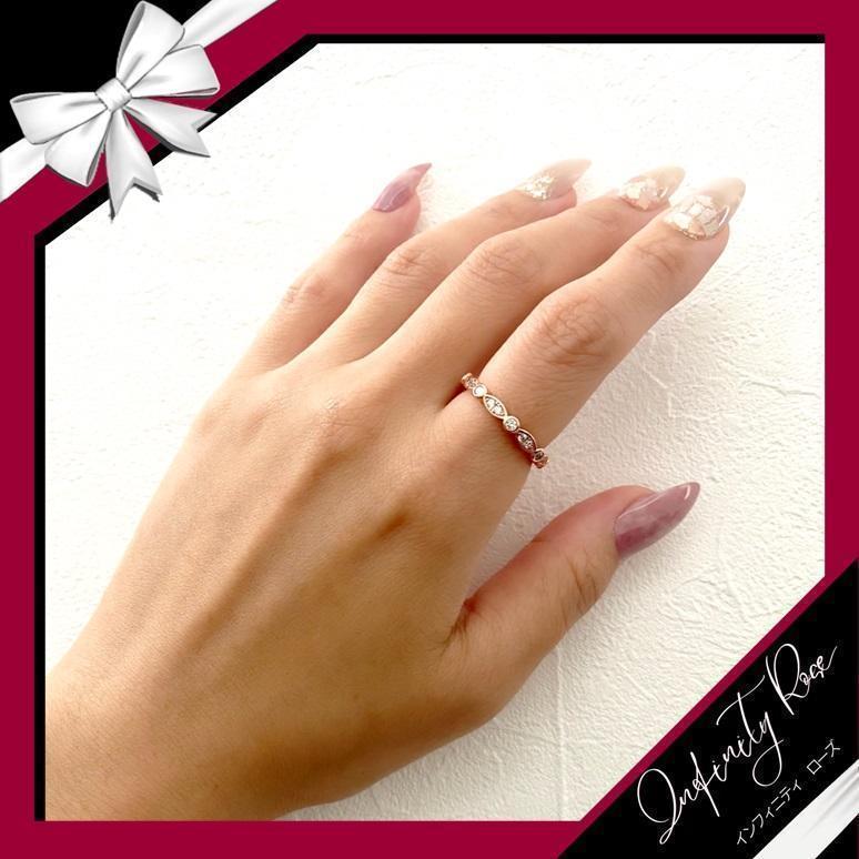 (R031P)21号 ピンクゴールドメビウス繋がる大人リボンリング 高価爪留め