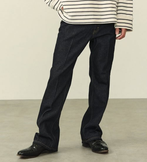 ◎ブーツカット・フレアカットスタイル/ユーズドやダメージ加工なし/定番の濃紺ワンウォッシュなリンスカラー