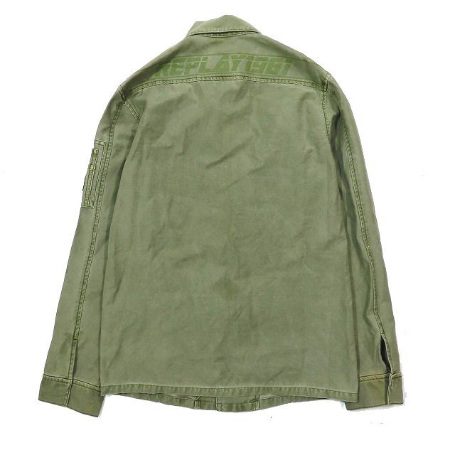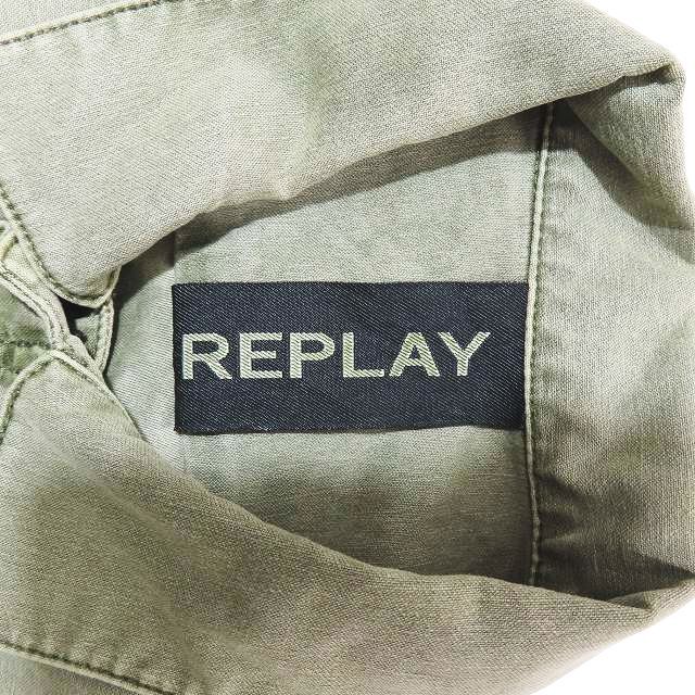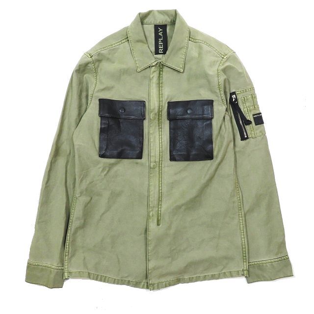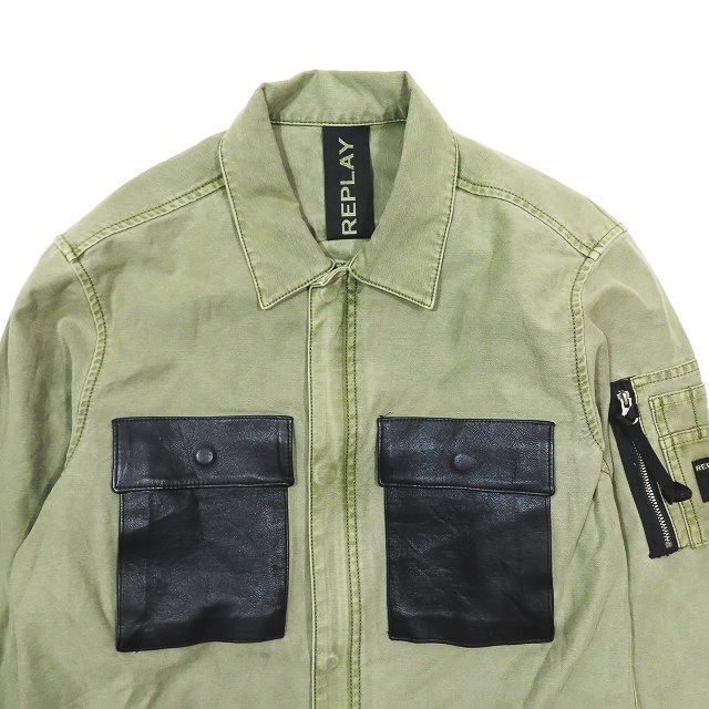 リプレイ REPLAY フェイクレザーポケット コットンサテン ミリタリージャケット ブルゾン アーミー S メンズ
