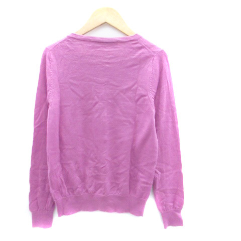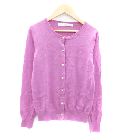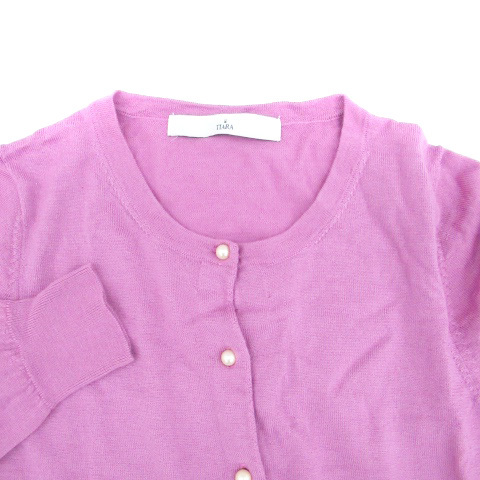 ティアラ Tiara ニットカーディガン ラウンドネック ミドル丈 フェイクパール ウール 紫 パープル /HO8 レディース