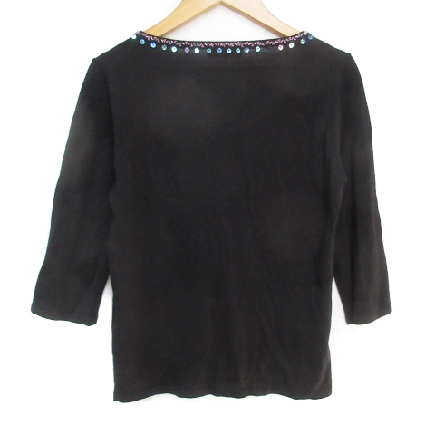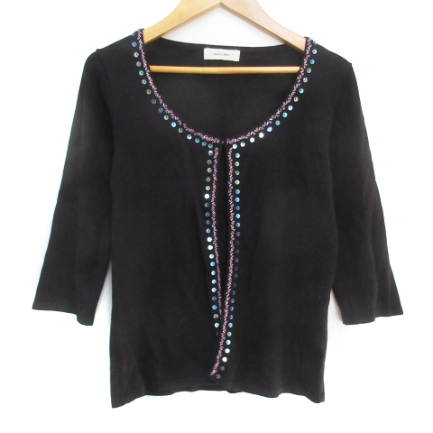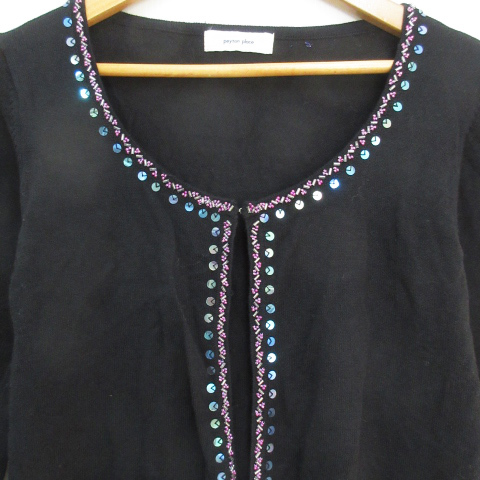 ペイトンプレイス PEYTON PLACE ニットカーディガン 薄手 ミドル丈 七分袖 ビーズ スパンコール 9 黒 ブラック /FF26 レディース