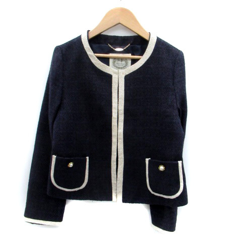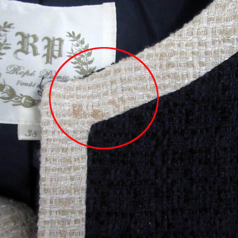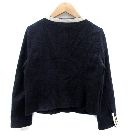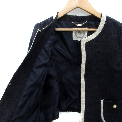 ロペピクニック ROPE Picnic ノーカラージャケット ミドル丈 フェイクパール 38 紺 ネイビー オフホワイト /HO15 レディース