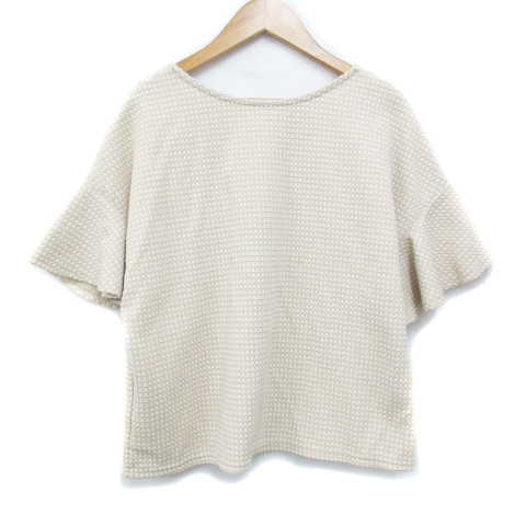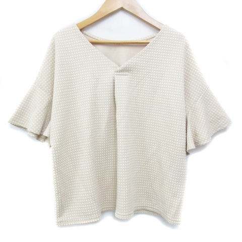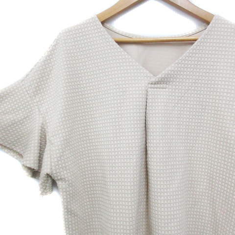 ロペピクニック ROPE Picnic カットソー 五分袖 Vネック 総柄 38 ライトベージュ アイボリー /FF22 レディース