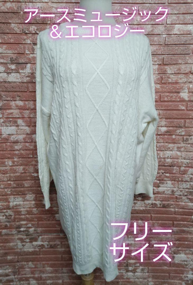 アースミュージックアンドエコロジー ケーブルニットワンピース アイボリー