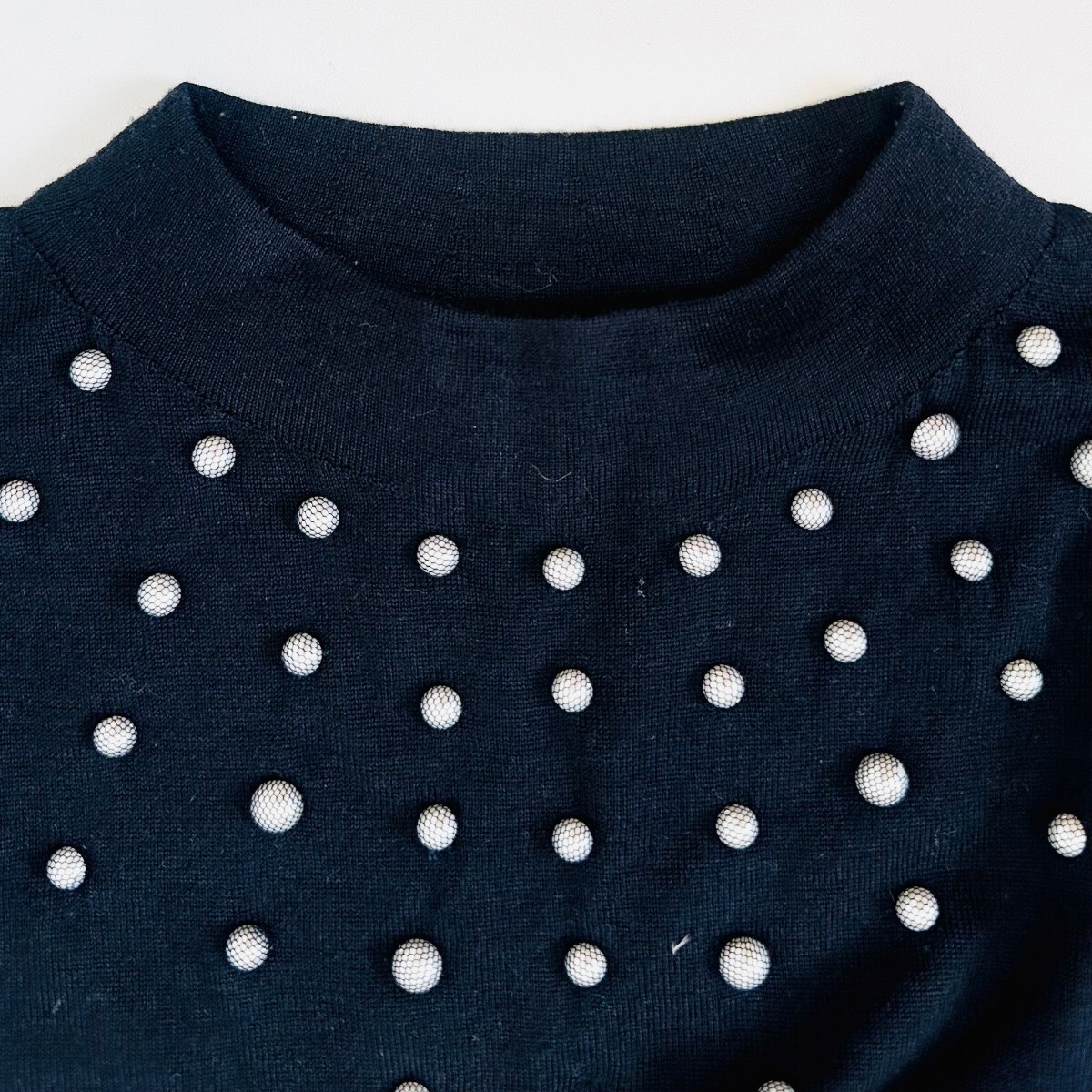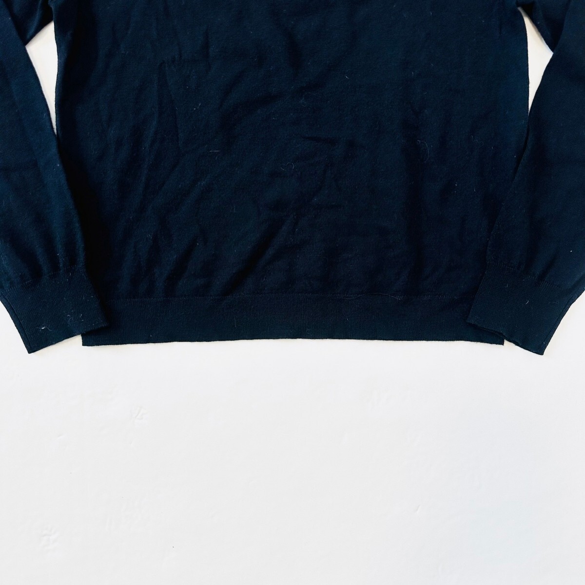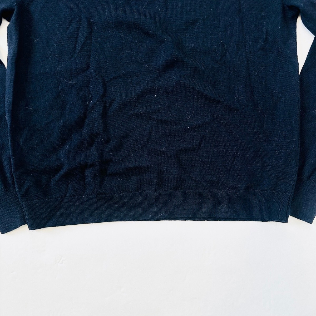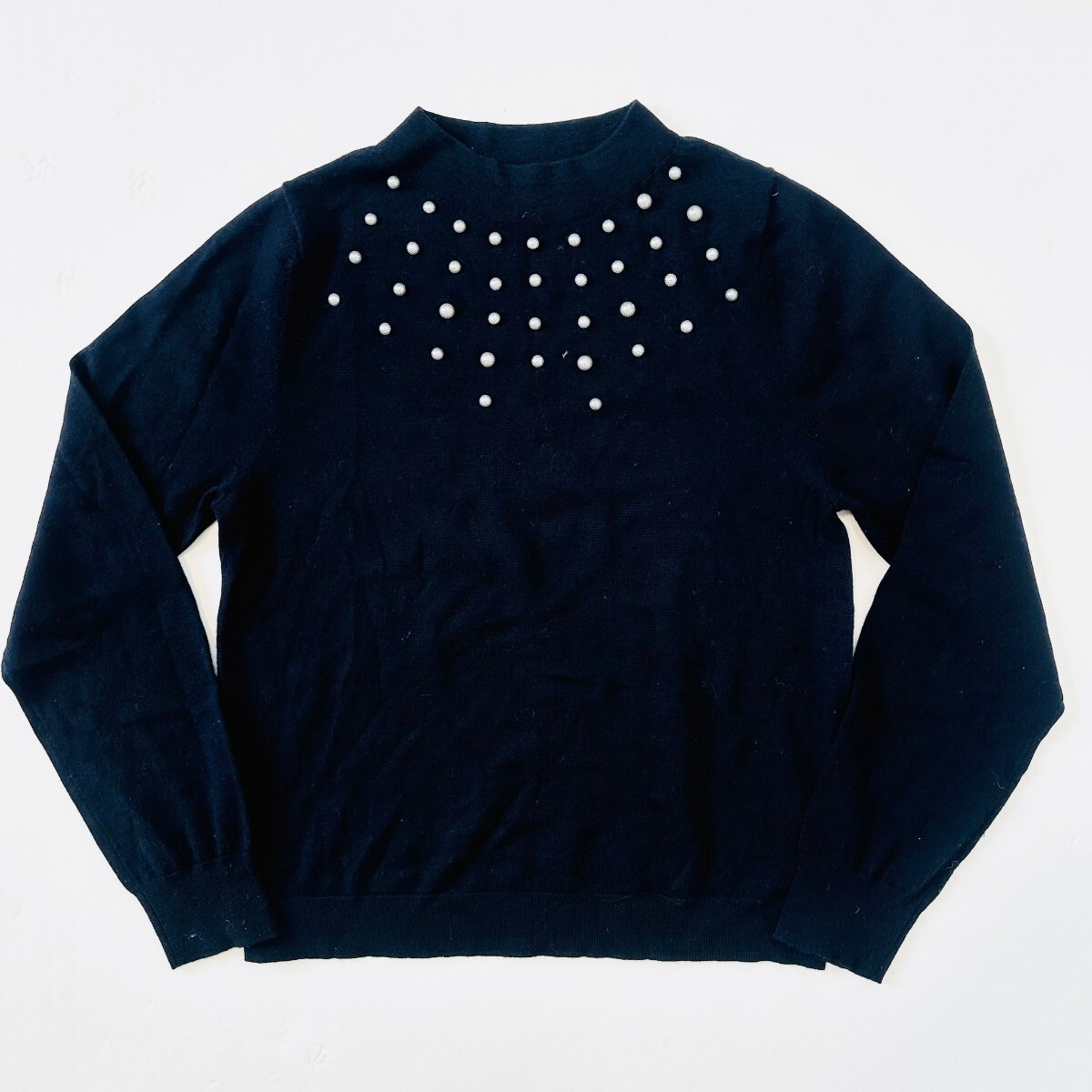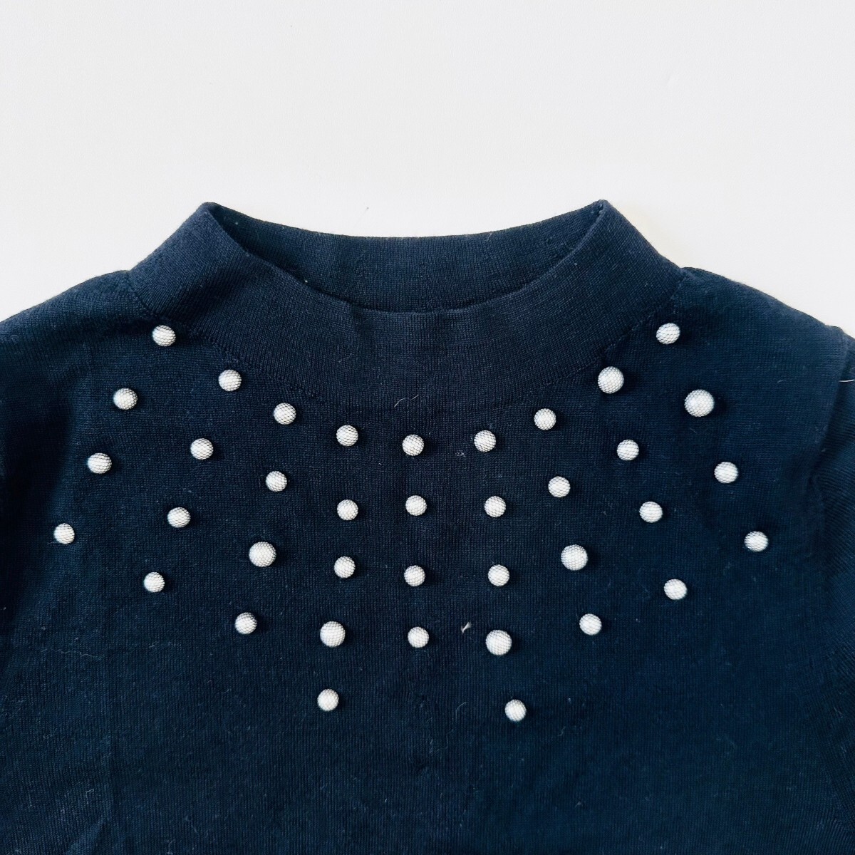 F9927iL Leilian レリアン サイズ9 (S~M位) ニットセーター 薄手 ネイビー系 濃紺 パールボタン 装飾 レディース 毛100% きれいめ