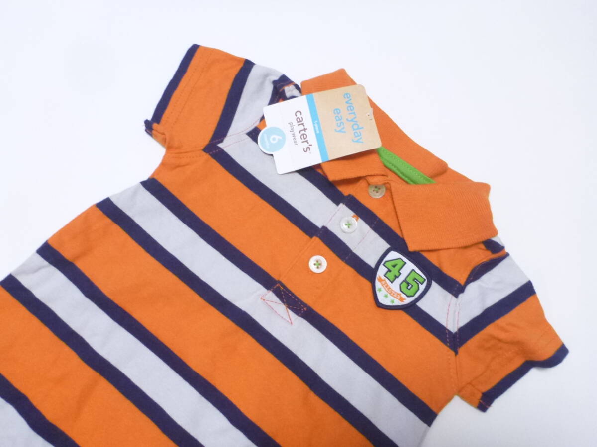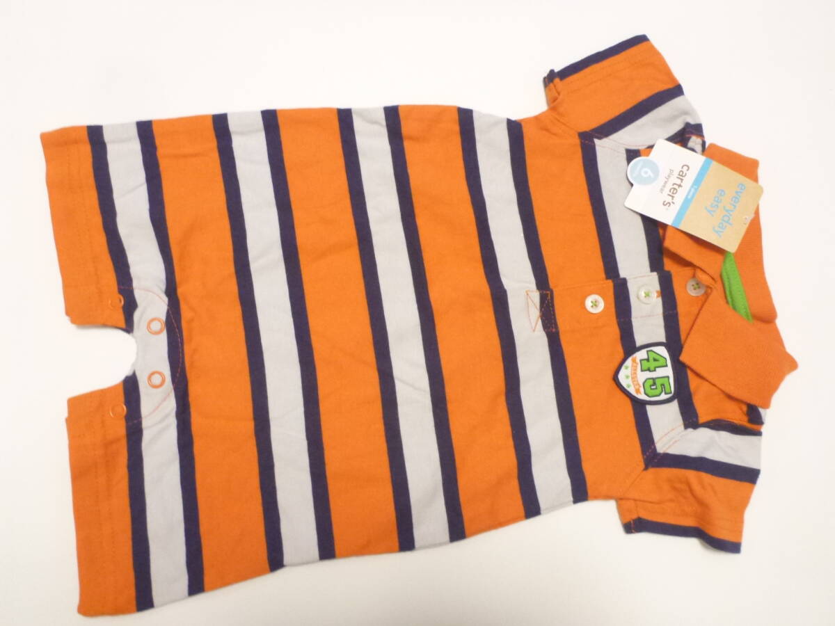 新品 carter's カーターズ ★人気ブランド オレンジ×紺×グレー ボーダー つなぎ オールインワン 6m 60~70 ファイディングニモ風