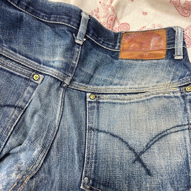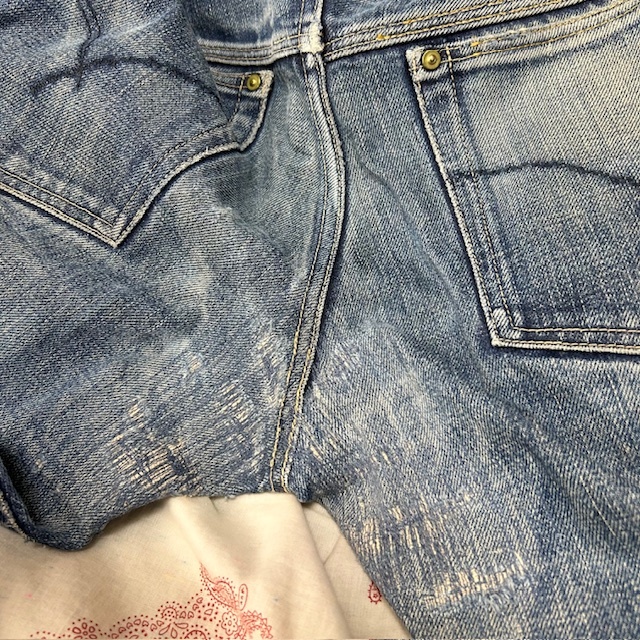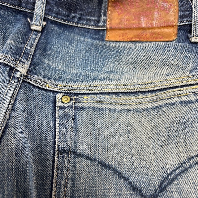 ●状態・・・USEDになりますが、丁寧に着られていた感じで、一定の着用感・上記のようなタタキリペア・裾に若干の擦れは見られますが、USEDデニムのいい風合いで、目立つ汚れやダメージなどは見られず、USEDを着られる方でしたら問題なく着ていただける、風合いのあるメンテされた綺麗な状態だと思います。