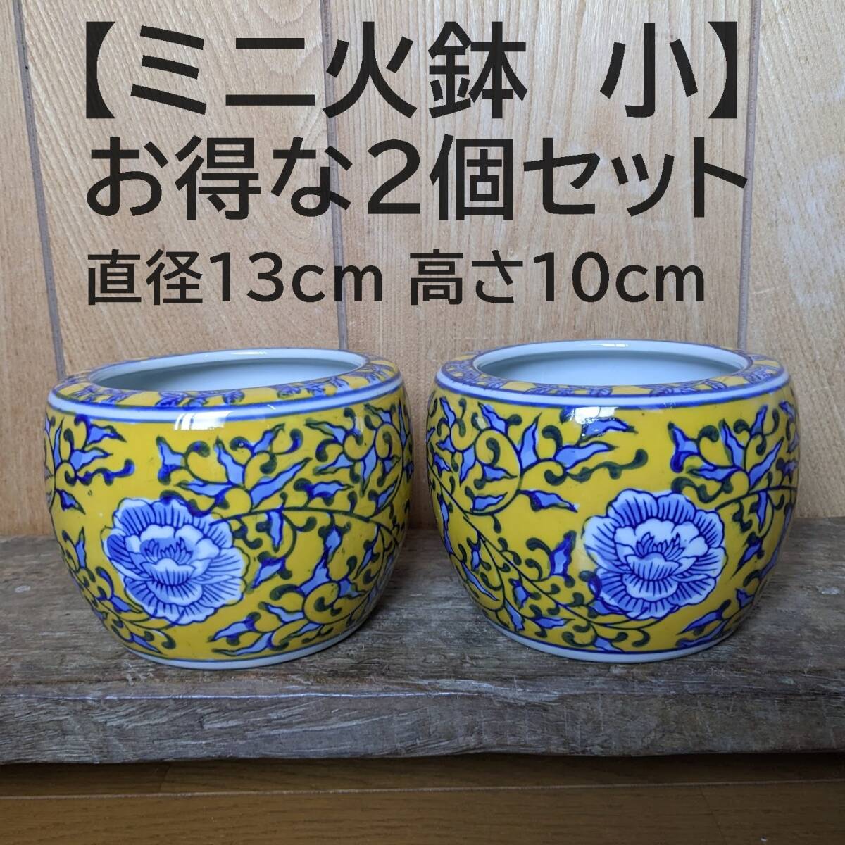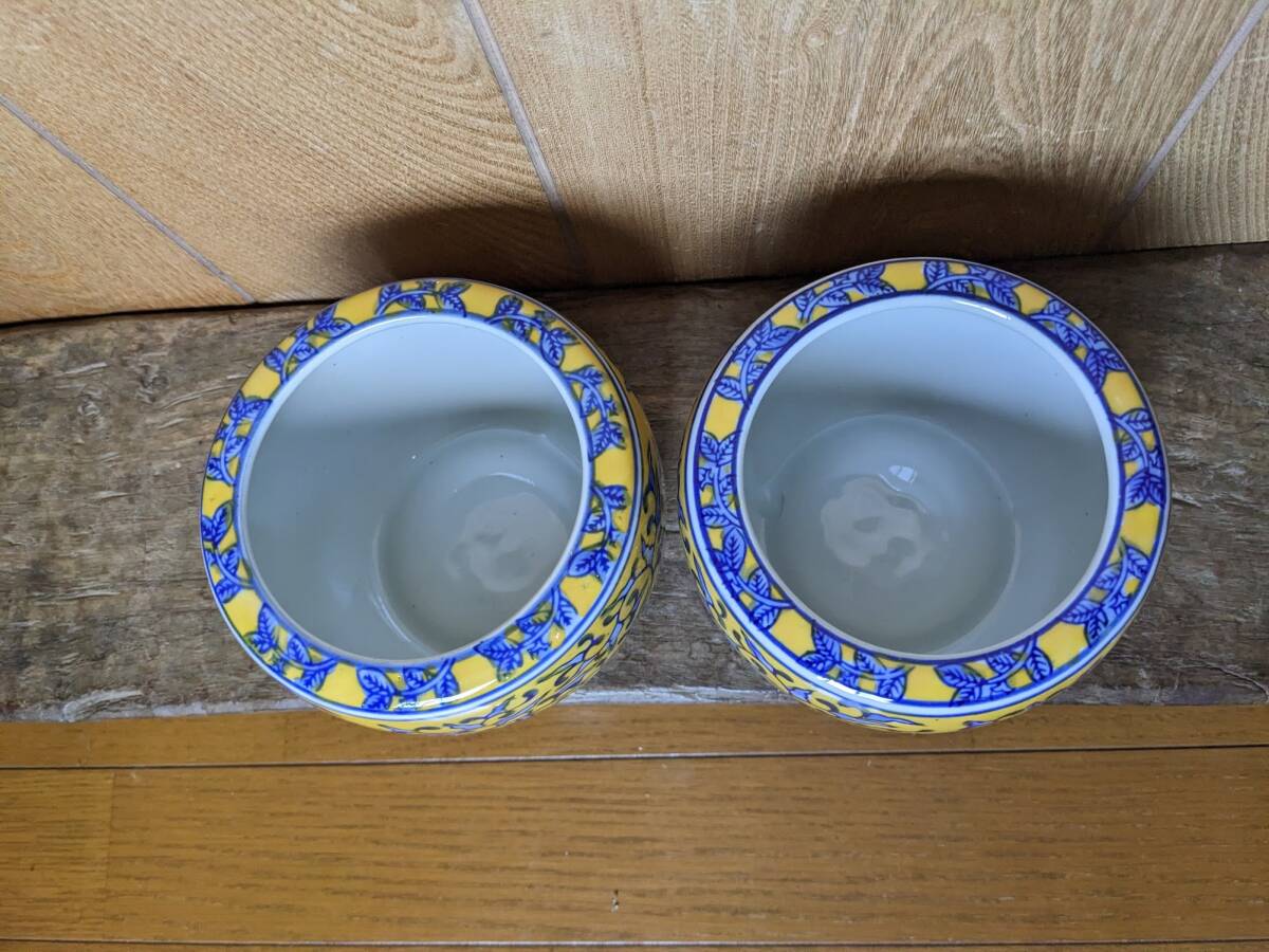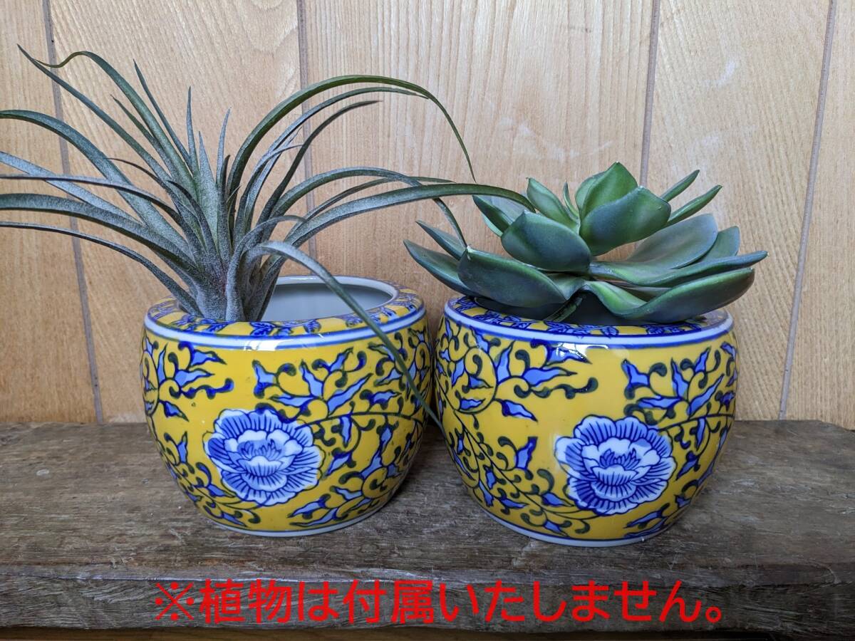 【お得な2個セット】3900円→3500円 2個で400円お得なセットです♪ 風水において、黄色は喜びや楽しみなどの明るい運気を引き寄せて、幸せを育む色です。陶器や自然素材で黄色を取り入れるとより金を強化するそうです。 「西に黄色」と金運アップでも有名です。西側に置くインテリアとしておしゃれにお楽しみいただけます。 やや小さいタイプですので、めだかや睡蓮鉢などにもいいかもしれません。インテリアとして水をはって浮き玉や水草を浮かべて涼を楽しんだり、ワインクーラーや鉢カバーとしてご利用いただいても素敵です。 雰囲気のある柄で骨董品や景徳鎮などの焼き物でもよく見かける絵柄ですが、 新品ですので骨董が苦手な方にお勧めです。 ※蚊取り線香を入れてみました。5インチの中には入るのですが、入口が小さくレギュラーサイズは斜めにしないと入らないため、ミニタイプ(3時間燃焼)のご使用をおすすめいたします。灰がたまって洗えるので便利です。 小1950円/個 サイズ(約) 5インチ 3号 直径13cm(内径入口 9.5cm) 高さ10cm ※写真と同等品を発送いたします。多少個体差がございます。 ※植物等はイメージ写真のため付属いたしません。 火鉢にはフチがあるので、浮き玉ははじっこに寄りやすいです。 商品の性質上、窯キズや黒い点や絵のはみだし・カスレ、突起、ピンホールなどが若干はじめからある場合がございます。